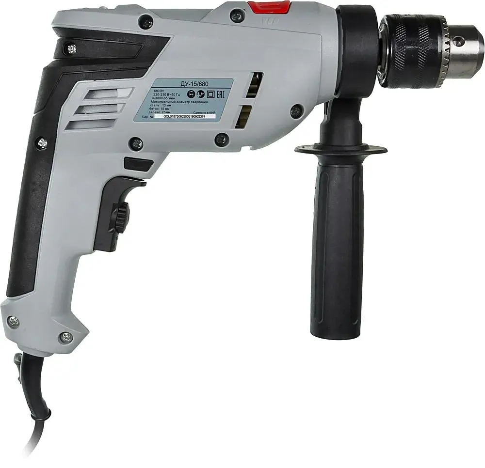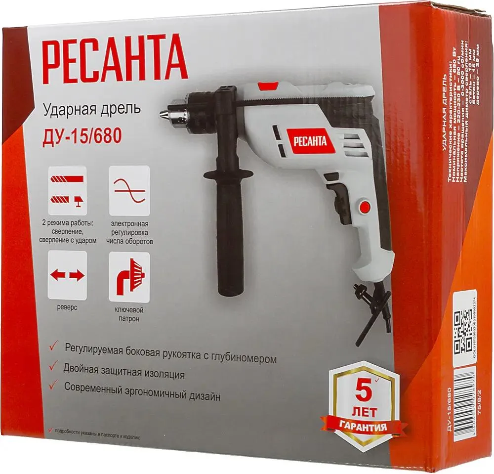 Дрель ударная Ресанта ДУ-15/680 - электрический инструмент, предназначенный для сверления отверстий в различных материалах, а так же заворачивания/отворачивания винтов и шурупов, при проведении строительных, отделочных, столярных, слесарных и других работ.
