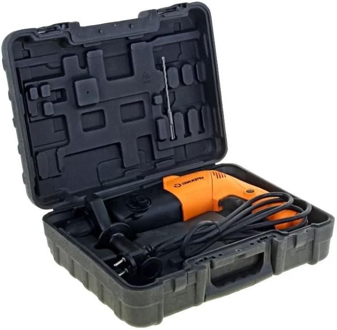 Перфоратор ВИХРЬ П-900К имеет три режима работы: сверление, сверление с ударом и долбление. Функция реверса позволяет легко извлекать сверло из материала при застревании. Передняя дополнительная рукоятка поворачивается на 360 градусов для более удобной работы. Перфоратор используется для сверления отверстий в металле, дереве, кирпичной кладке, бетоне, природном камне. Предусмотрена эффективная защита от пыли. При продолжительной работе инструментом клавишу "Пуск" можно зафиксировать в положении "старт".