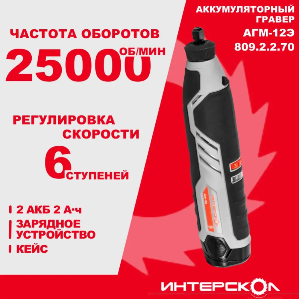 Аккумуляторный гравер ИНТЕРСКОЛ АГМ-12Э – это многофункциональный инструмент для работы с различными насадками, обеспечивающими шлифовку, резку, зачистку, фрезерование, заточку, гравировку.