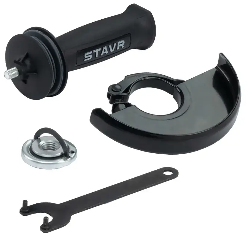 В комплекте имеется боковая антивибрационная рукоятка, быстрозажимная гайка и руководство по эксплуатации.