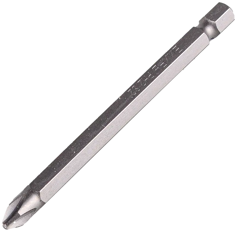 Изготовлены биты из высококачественной инструментальной стали марки S2. Наконечник типа PН2 (Phillips) - крестообразный наконечник. Длина бит 90 мм. Твердость бит составляет 59-62 HRС. Основу биты составляет шестигранный хвостовик размером 6,35 мм (1/4 дюйма). В комплекте 1 штука.