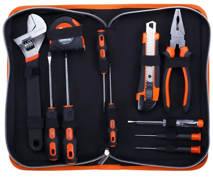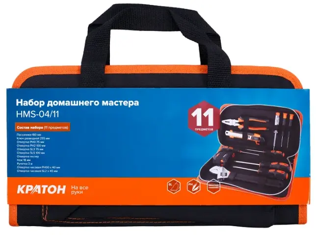 Набор домашнего мастера марки Кратон включает в себя большое количество разных инструментов, которые пригодятся в быту любому человеку. Рабочие части изделий сделаны из прочной стали. Инструменты оснащены двухкомпонентными рукоятками, которые способствуют надежному и крепкому захвату, и максимально эффективной и безопасной эксплуатации. Набор поставляется в компактном пенале с ручкой, благодаря чему его легко транспортировать.