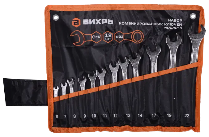 Набор комбинированных ключей 12 шт. 6-22 в чехле представляет собой комплект инструмента, при помощи которого можно без труда работать с типовыми размерами шестигранного крепежа.