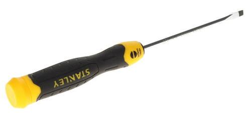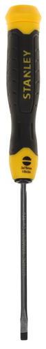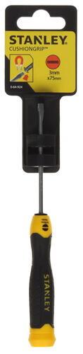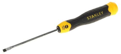 Отвертка под прямой шлиц Stanley 0-64-924 имеет удобную рукоятку с куполообразным концом для быстрого вращения. Используется даже в стесненных условиях, так как длина стержня всего 75 мм. Хромовое покрытие защищает от коррозии, что увеличивает срок эксплуатации отвертки.