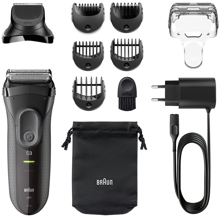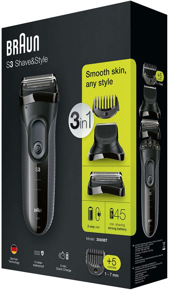 Сеточная электрическая бритва Braun 3000BT с возможностью подзарядки — это идеальный прибор 3-в-1 для ухода за волосами. Наслаждайтесь гладким бритьем, точной стрижкой бороды или щетины с помощью всего одного устройства, просто меняя головку и добавляя одну из 5 насадок.