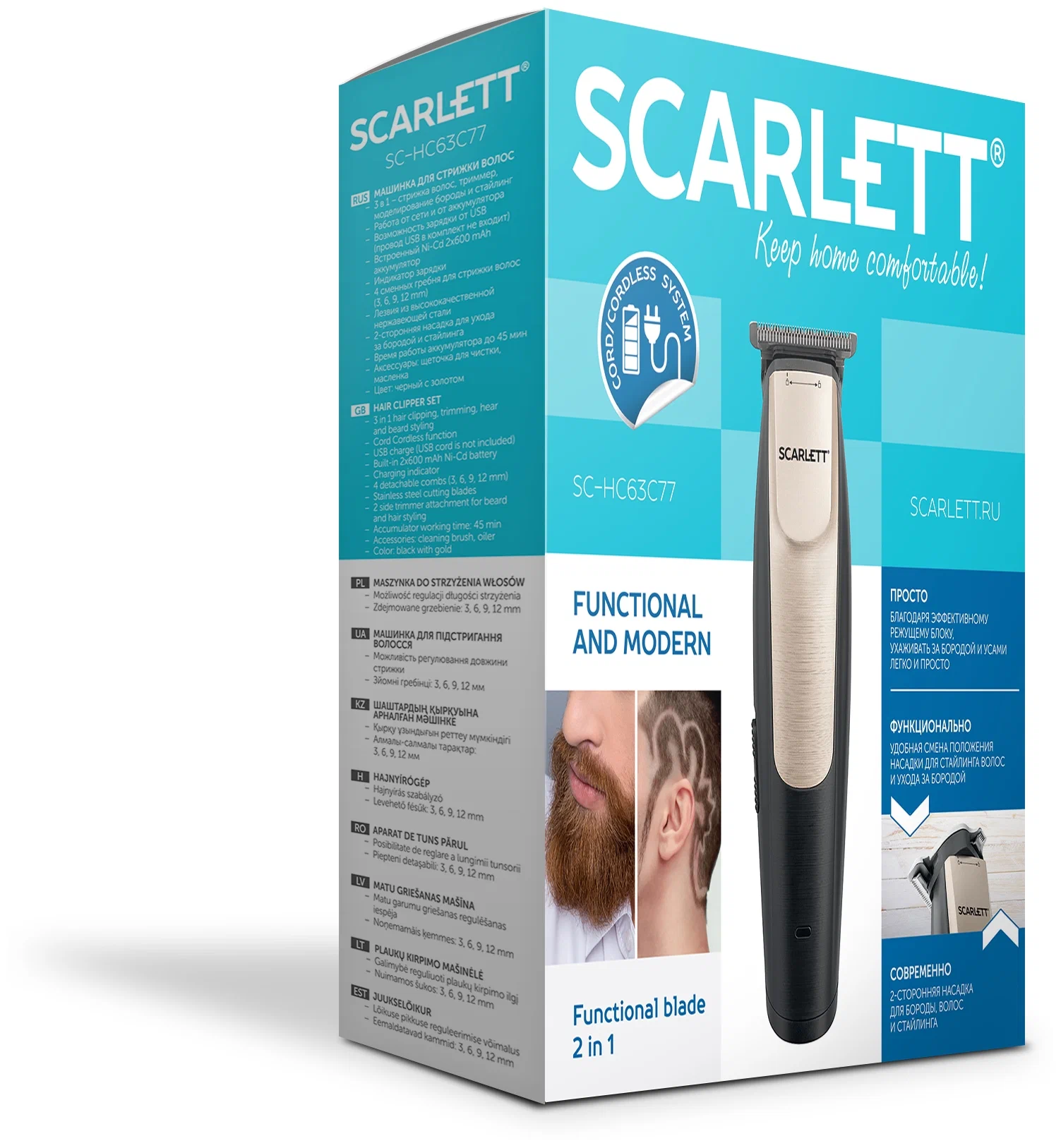 Стильная и многофункциональная машинка триммер для волос SC-HC63C77 это прибор 3 в 1 – стрижка волос, триммер, моделирование бороды и стайлинг. Работает от сети и от аккумулятора, а также имеет возможность зарядки от USB (провод USB в комплект не входит).