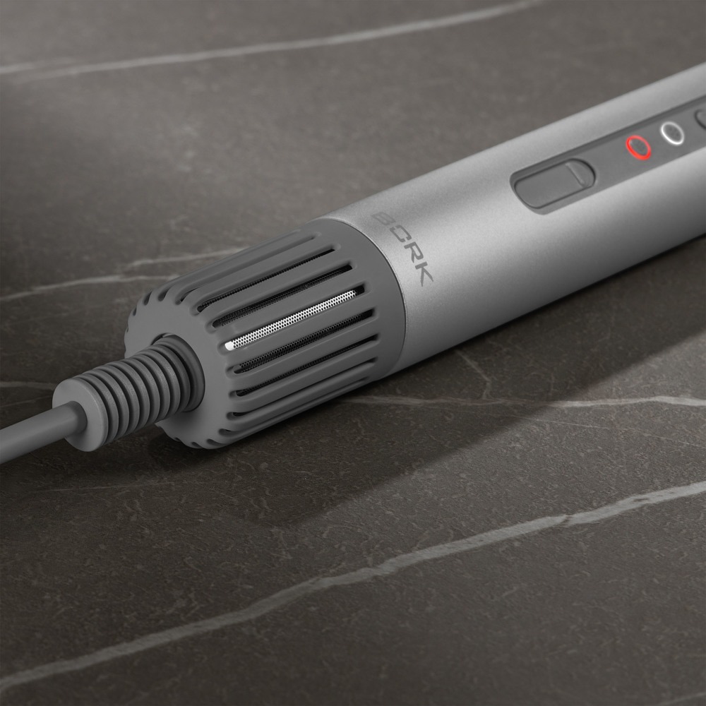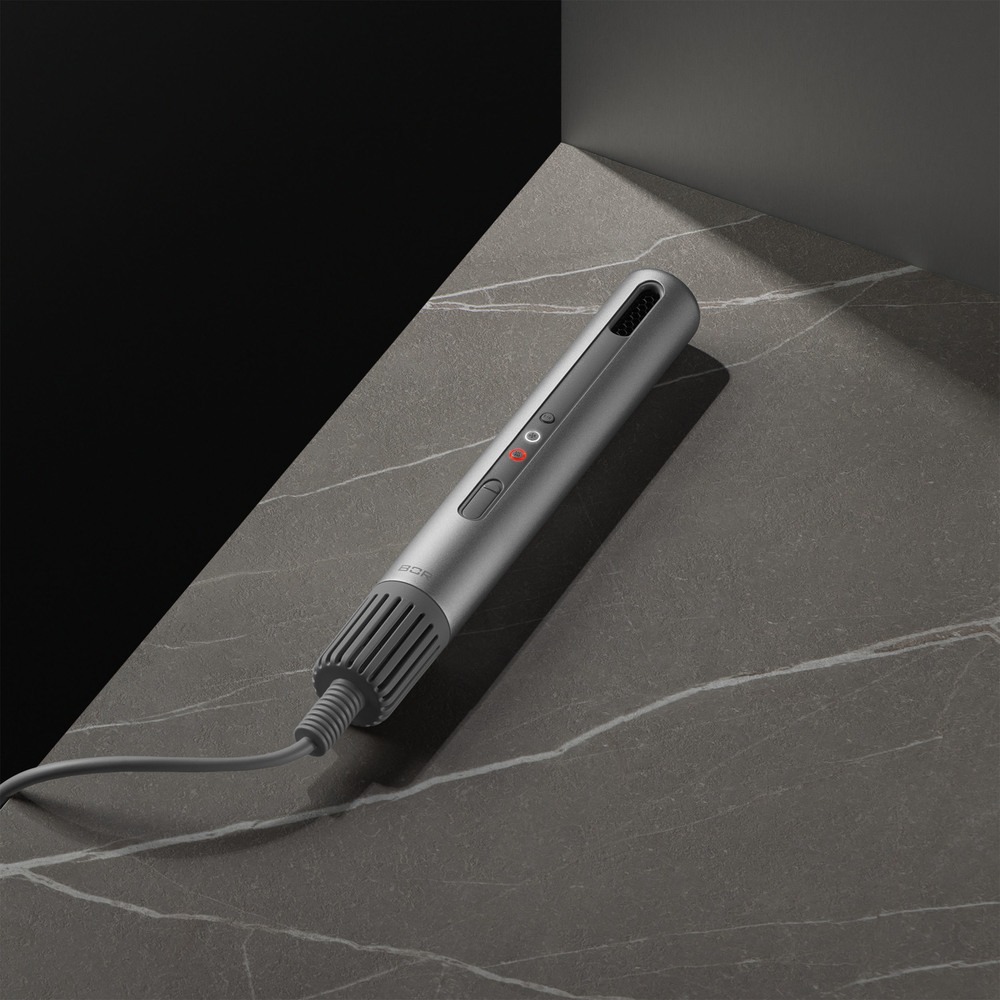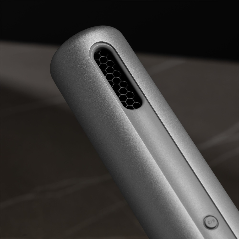 Минималистичная конструкция фена вдохновлена дизайном эстафетной палочки. Лаконичный силуэт, термостойкий корпус из анодированного алюминия и интуитивно понятное управление – эстетика инноваций в совершенном проявлении.