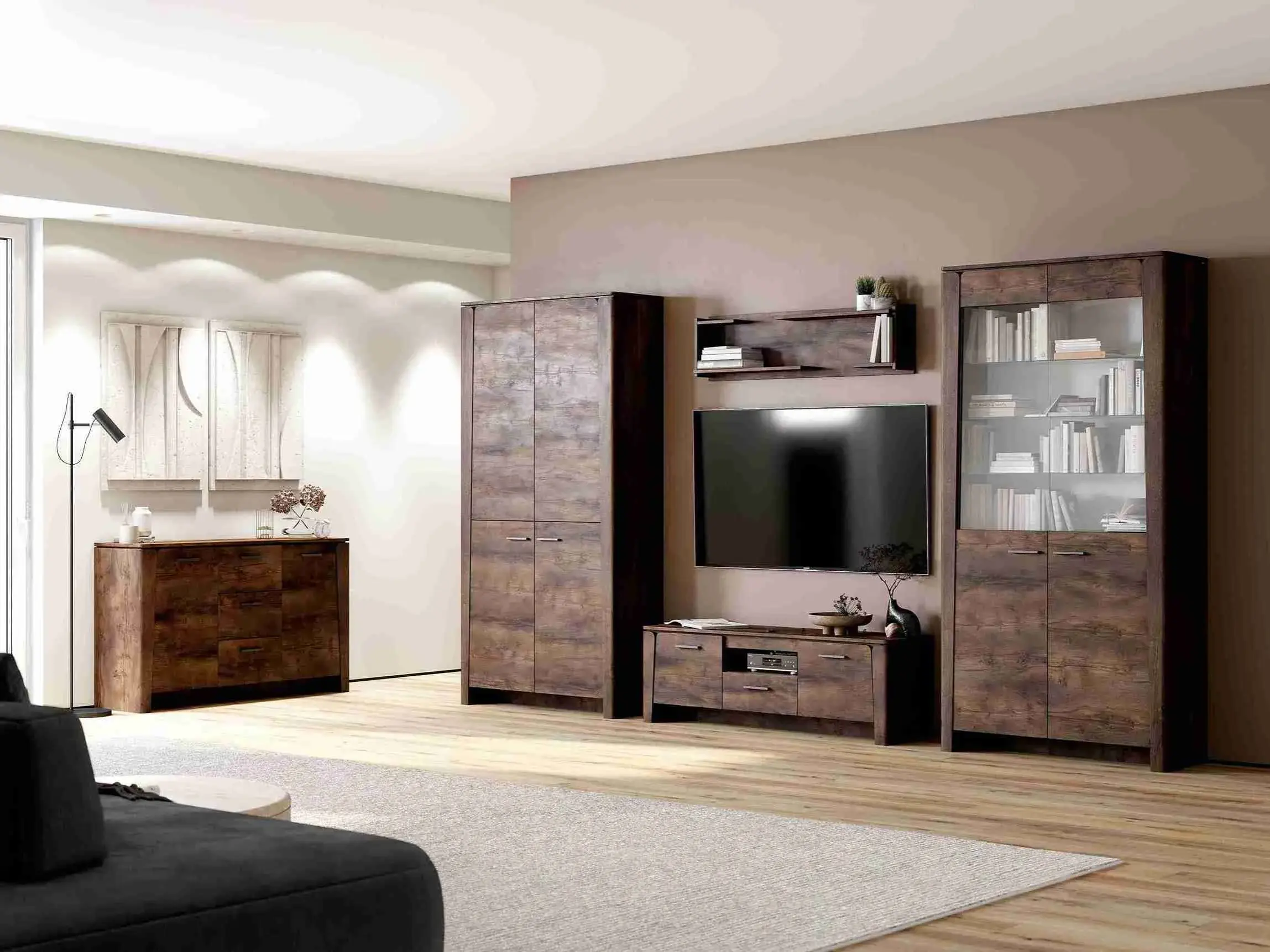 Двухдверный шкаф "Мальта" выполнен в натуральных оттенках, он подойдет как для классической, так и для современной гостиной.