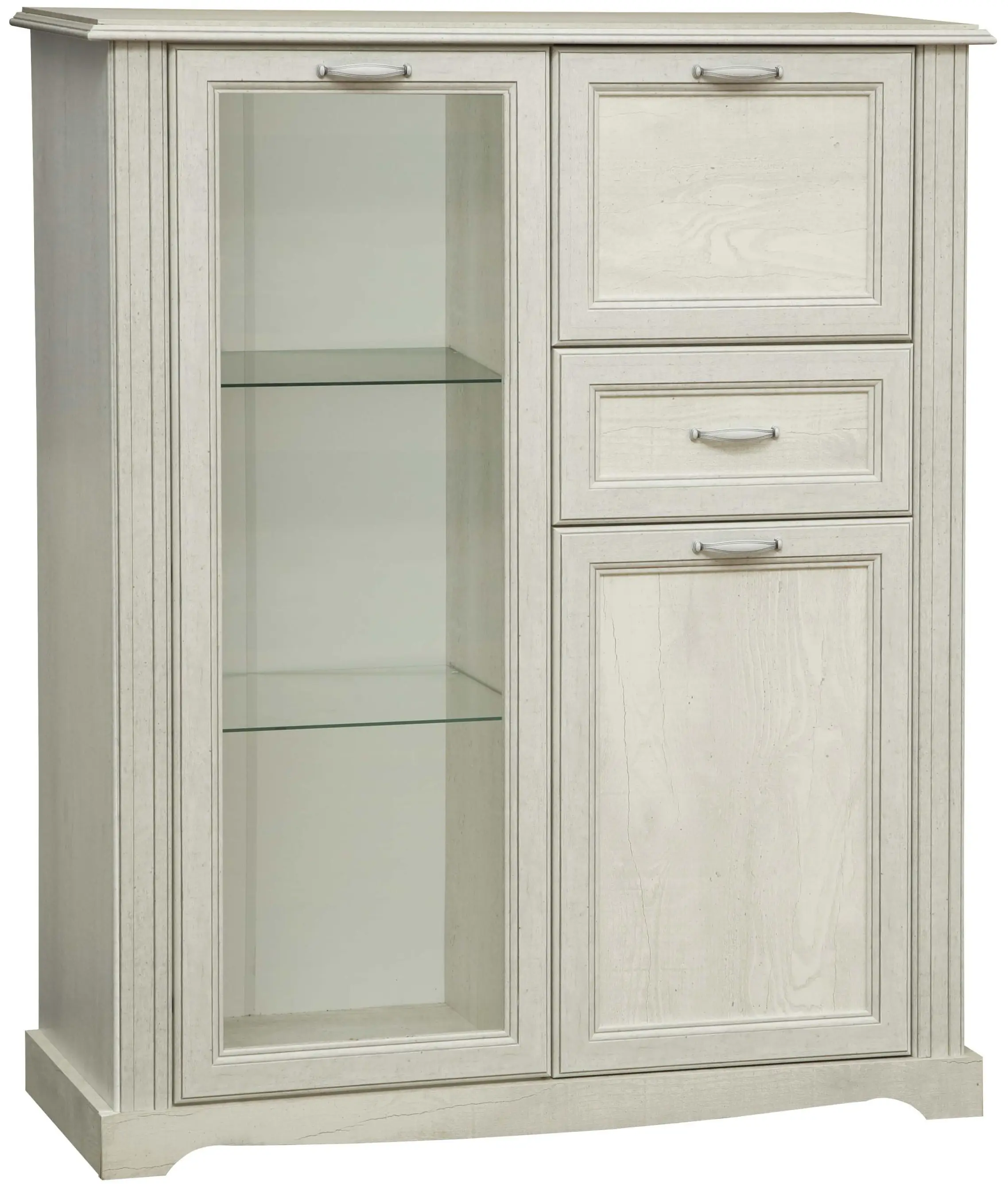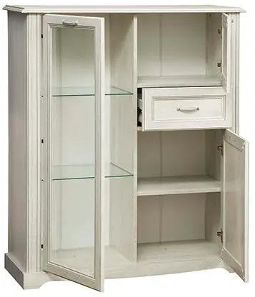 Шкаф комбинированный 32.09 Сохо (бетон пайн белый / профиль: бетон пайн белый патина / ДВПО: белый / стекло) исполняется в классическом стиле и спокойных цветах. Модель сочетает в себе простоту и функциональность, но при этом не выглядит громоздко. Она гармонично впишется в пространство, не утяжеляя его.