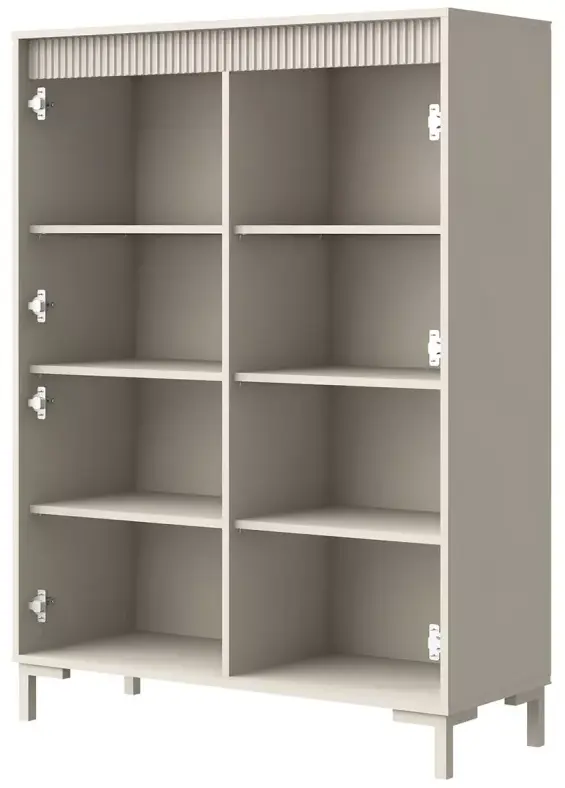 Внутри шкафа предусмотрено 6 полок, которые позволяют удобно разложить книги, документы, текстиль, посуду или декоративные коробки. Рациональное деление на секции помогает поддерживать порядок и эффективно использовать внутреннее пространство.