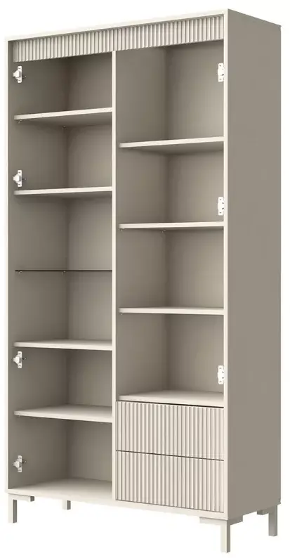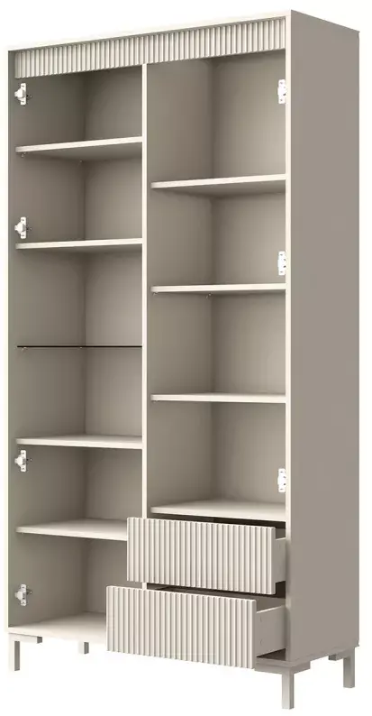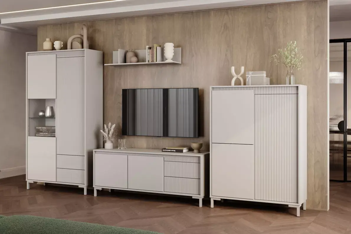 Шкаф для гостиной Свейн с выдвижными ящиками и стеклом - это функциональный акцент в модульной системе, сочетание закрытого хранения и лёгких витринных элементов. Он подойдёт для тех, кто хочет совместить практичность и современный минималистичный дизайн.