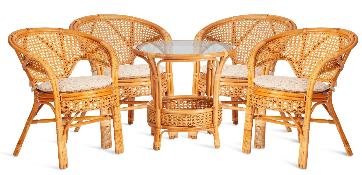 Ротанг – это натуральный материал, который отличается не только прочностью и долговечностью, но и экологичностью. Он не содержит вредных веществ и прекрасно вписывается в любой интерьер. Комплект из ротанга – это идеальное решение для тех, кто ценит комфорт и уют. Он лёгкий и мобильный, его легко перемещать по комнате.