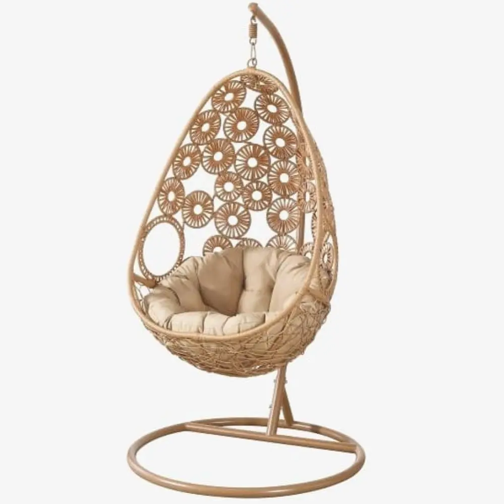 - Материал плетения на корзине: искусственный ротанг. Подушка в комплекте. Ткань с водоотталкивающей пропиткой.