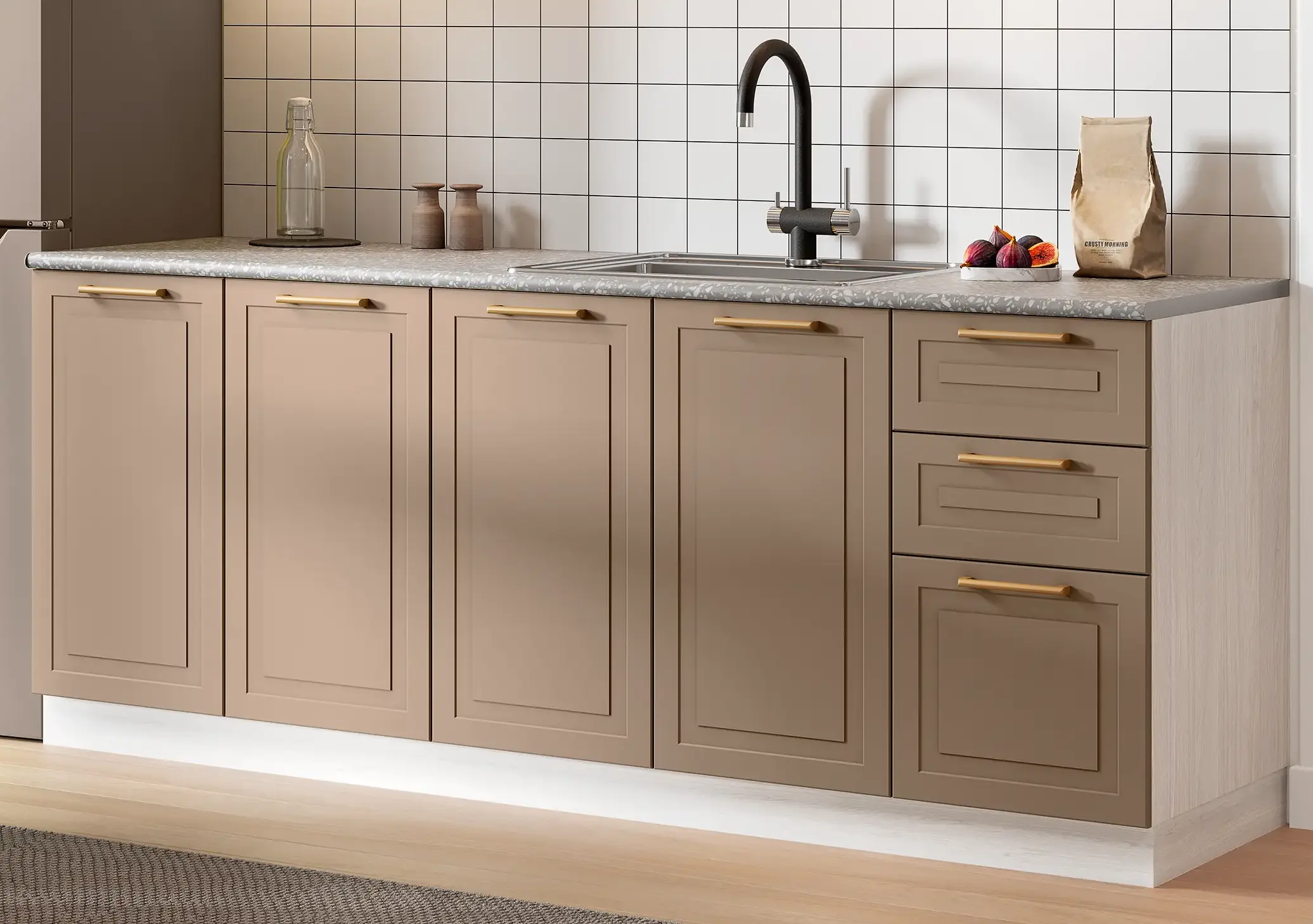 Гарнитур включает вместительные кухонные шкафы и модули, которые обеспечивают достаточное количество места для хранения посуды, продуктов и других кухонных принадлежностей. Разнообразные кухонные модули позволяют удобно организовать пространство по вашему усмотрению, а светлый оттенок Анкор добавит вашей кухне визуального простора и свежести.