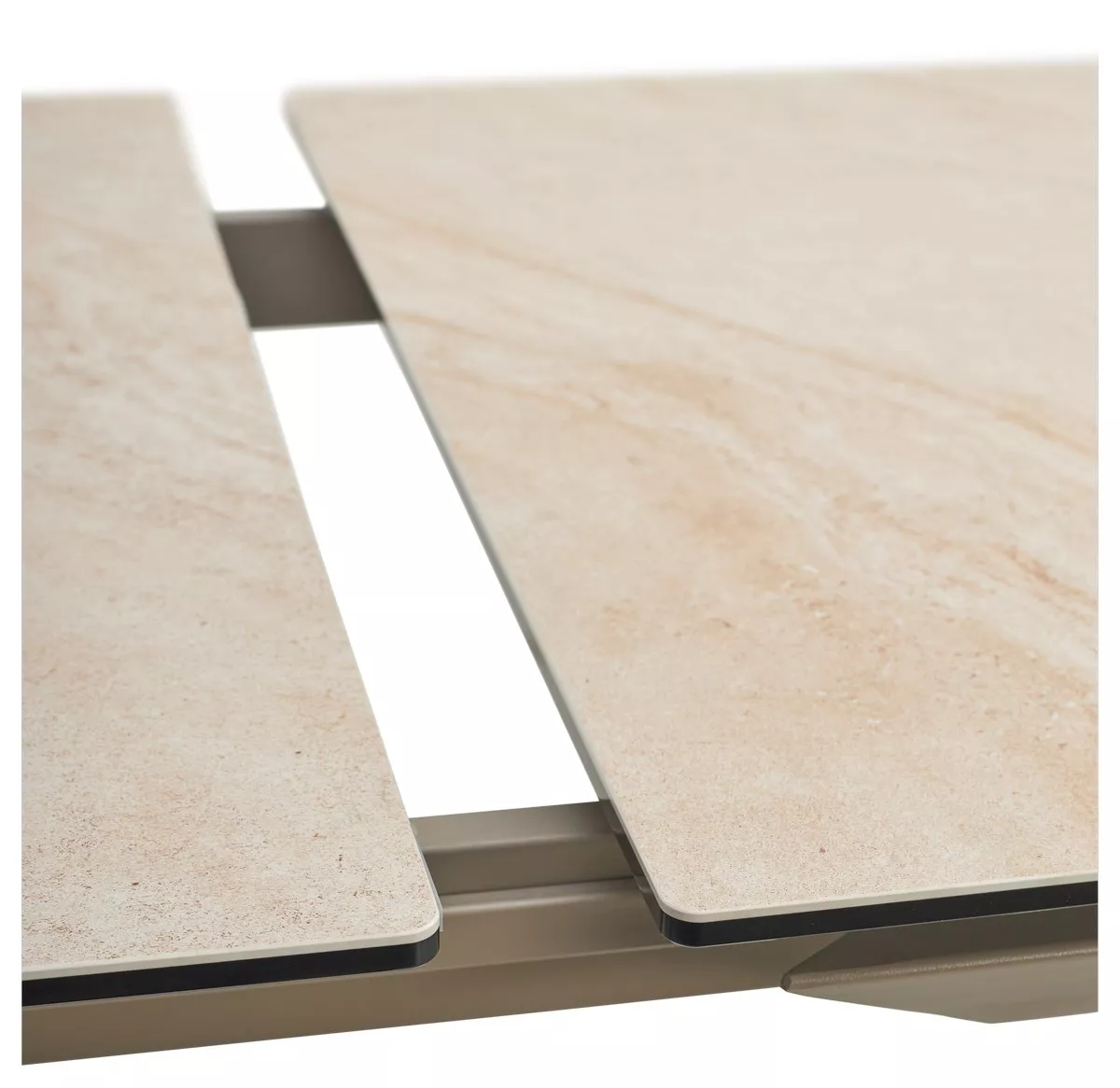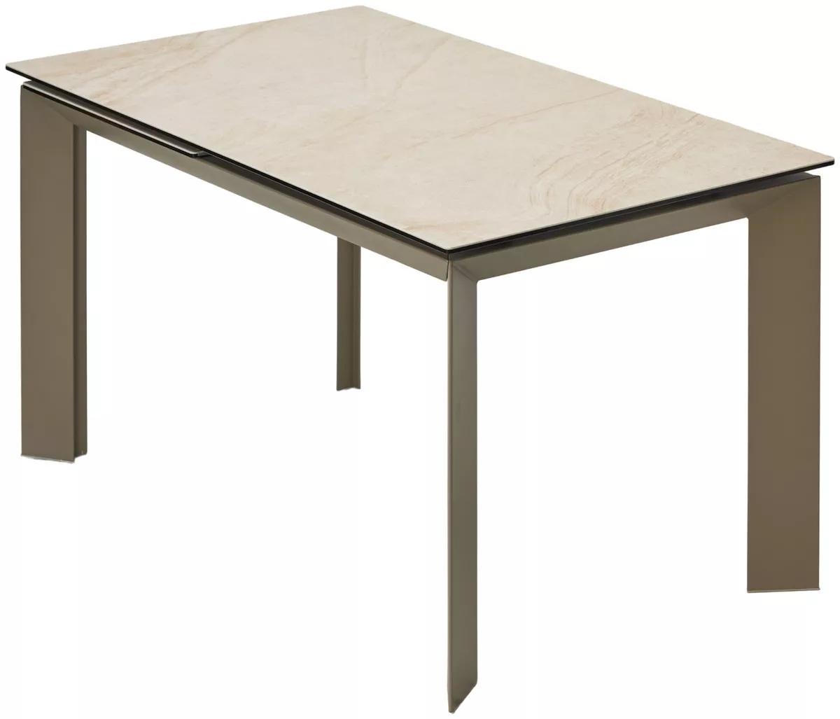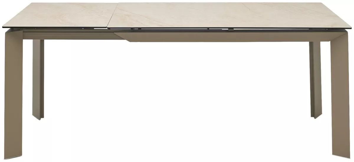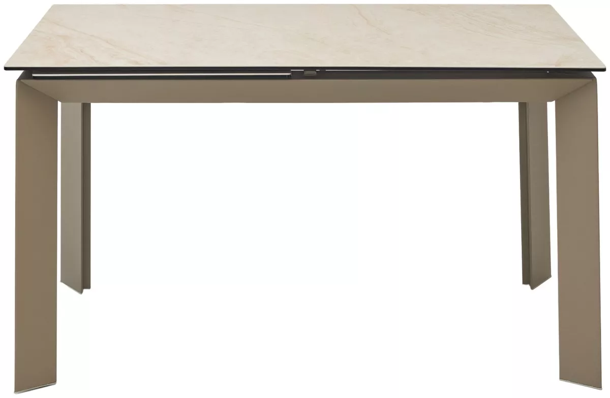 - основание стола - металл, цвет - тауп, ножки стола расположены по углам столешницы под углом;