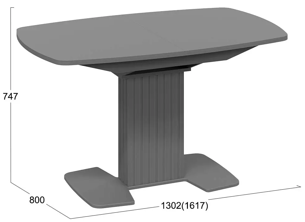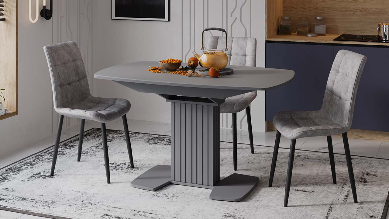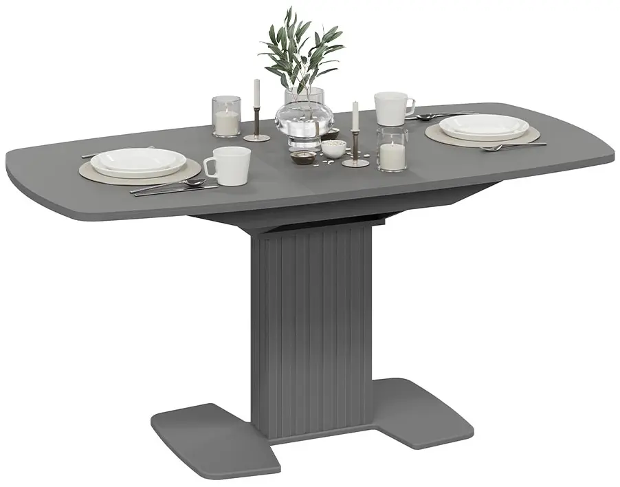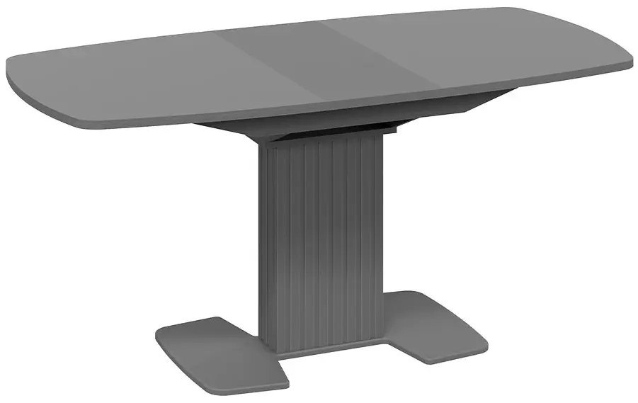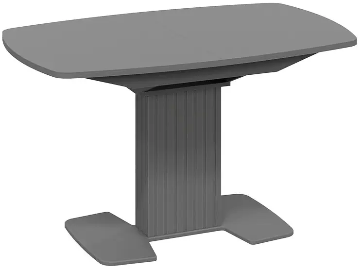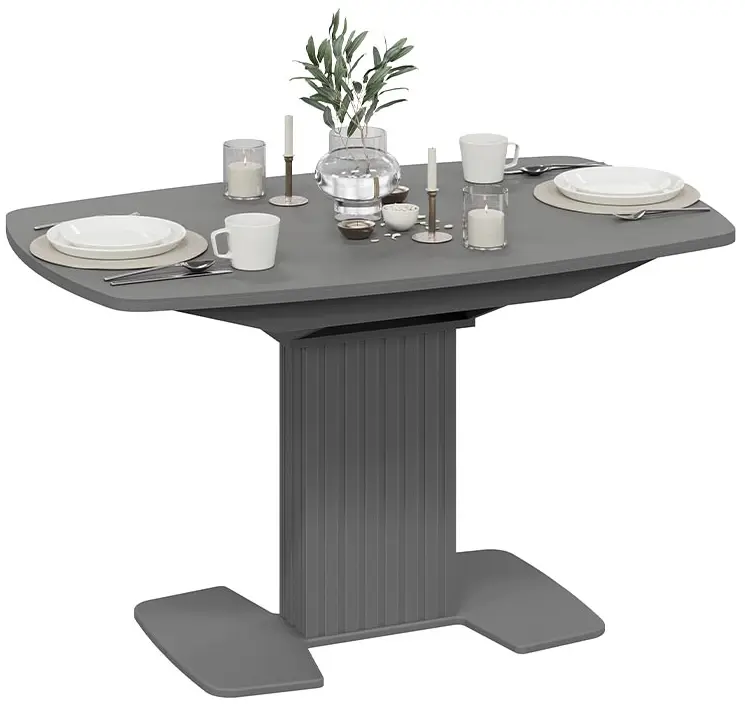 Подстолье и основание из МДФ с пленкой ПВХ не только обеспечивают прочность и устойчивость конструкции, но и делают стол легким в уходе. Оригинальная вертикальная фрезеровка в виде полос добавляет интересный визуальный акцент, что особенно привлечет внимание любителей стиля «модерн».