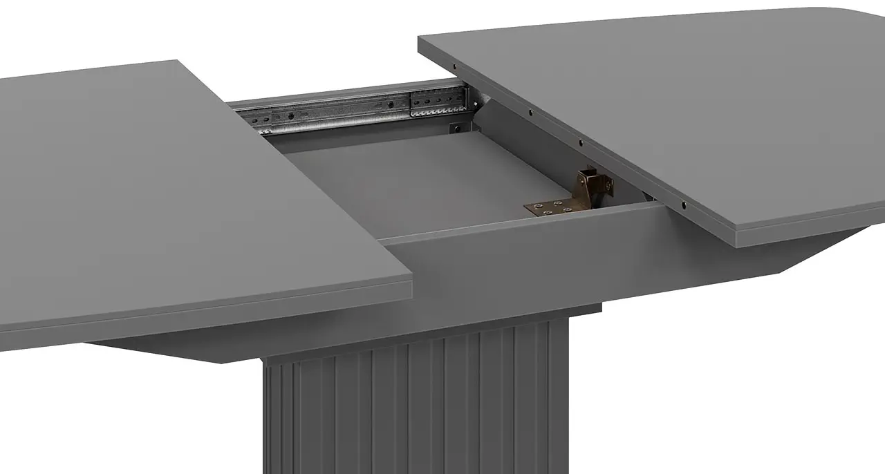 Модель обладает высокой функциональностью – за счет внутренней вставки «бабочка», выполненной из МДФ в пленке ПВХ, конструкция позволяет из компактных размеров сделать вместительный обеденный стол. Благодаря использованию направляющих синхронного раздвижения, регулировка размеров столешницы осуществляется плавно и без усилий.