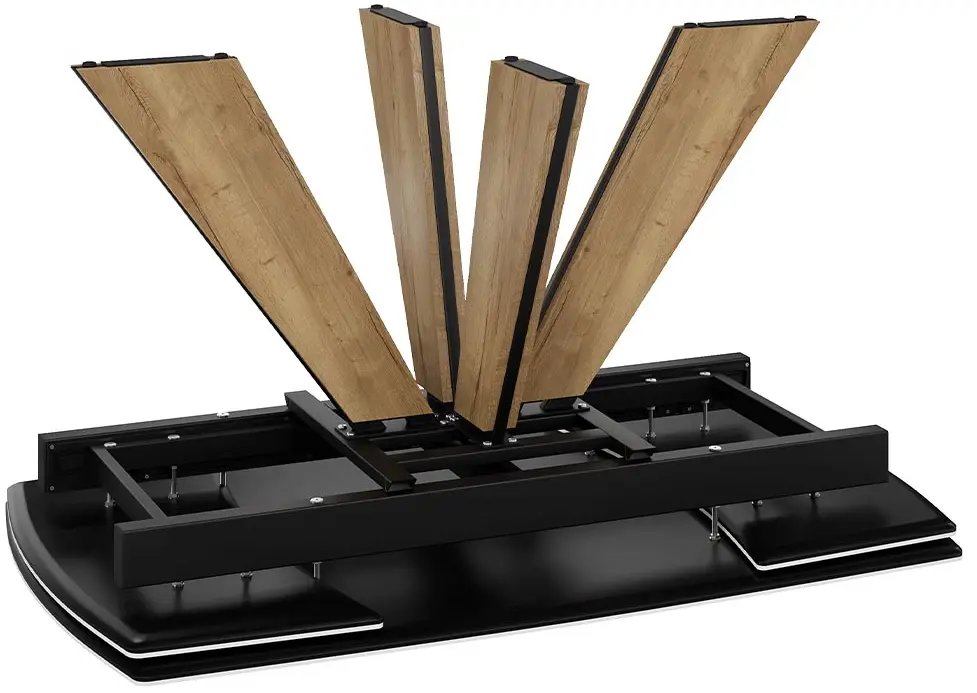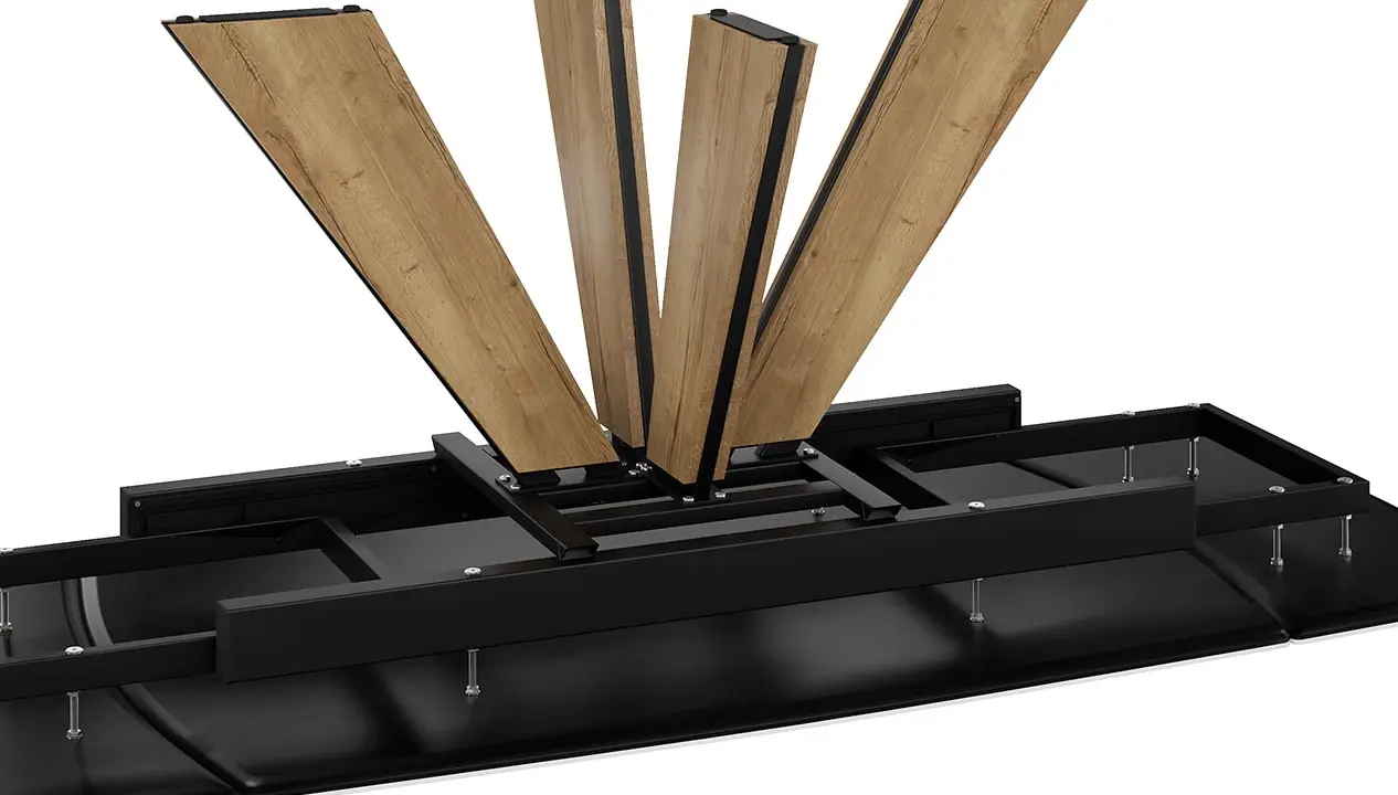 Стол раздвижной с двумя торцевыми механизмами подъема вставок. Это выручает в моменты прихода гостей, которых хочется разместить свободно и с комфортом. В основании ножек есть регулируемые подпятники для хорошей устойчивости и отсутствия скольжения. Этот функциональный элемент продлит срок службы, как самого стола, так и напольного покрытия. Процесс сборки стола минимальный, столешница поставляется уже в собранном виде, остается только прикрутить опоры.
