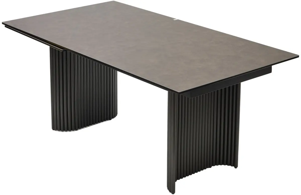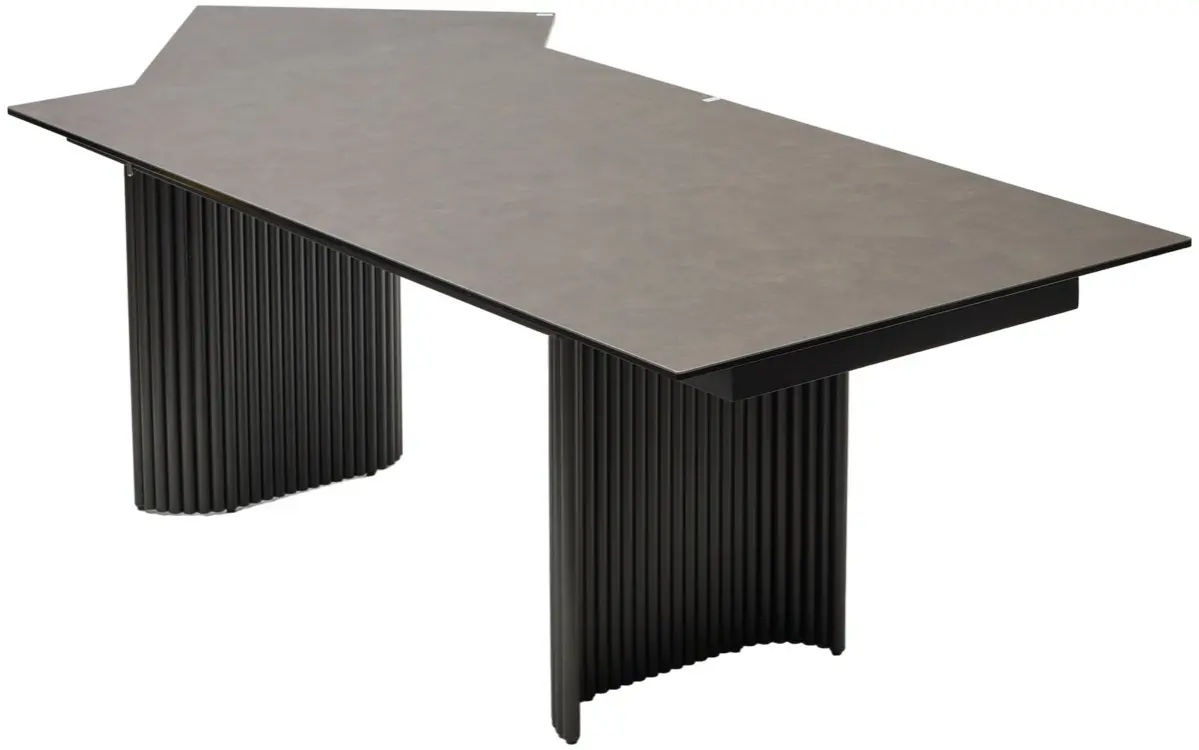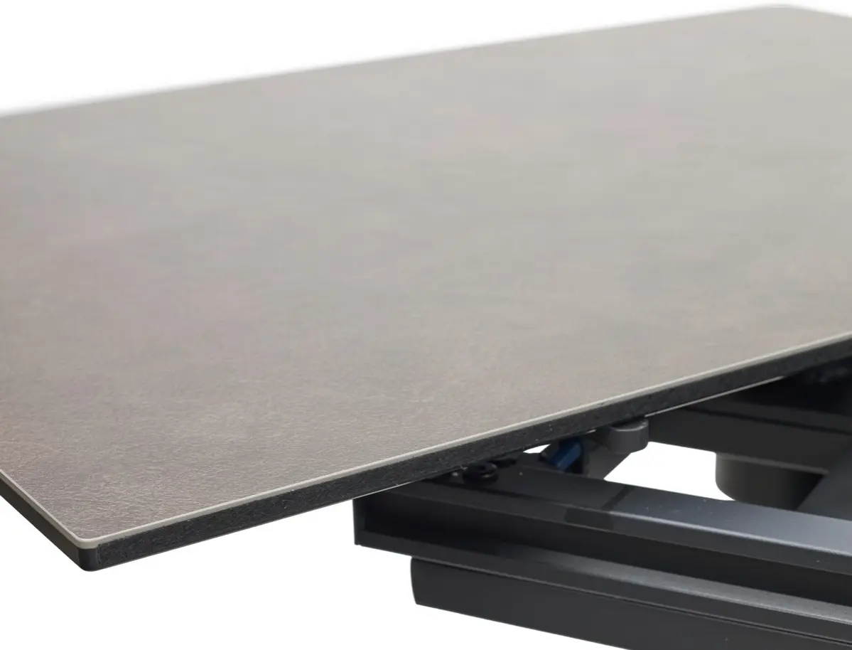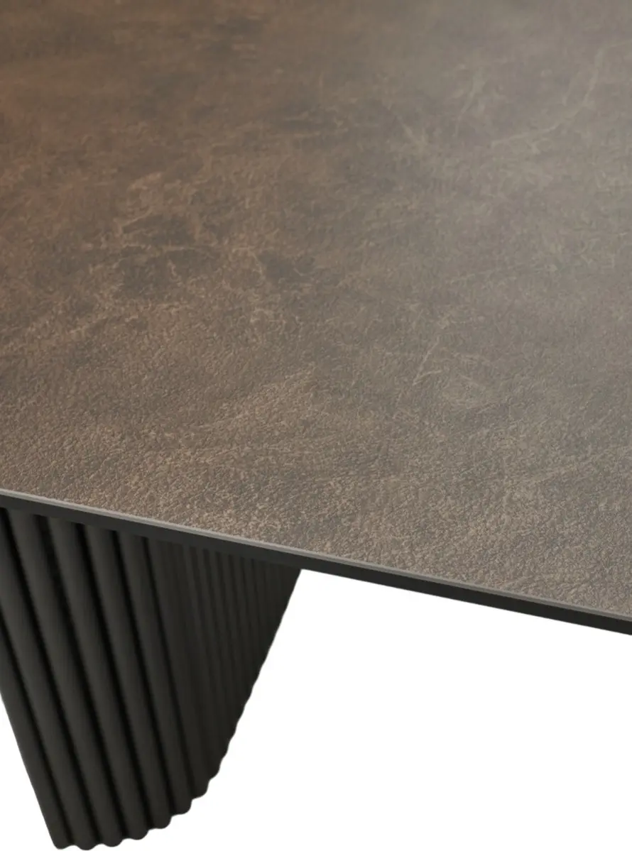 - матовая испанская керамика с визуальным эффектом поверхности "под кожу", толщина столешницы 13 мм (3 мм керамика + 10 мм стекло), не царапается, не впитывает загрязнения, термостойкая.