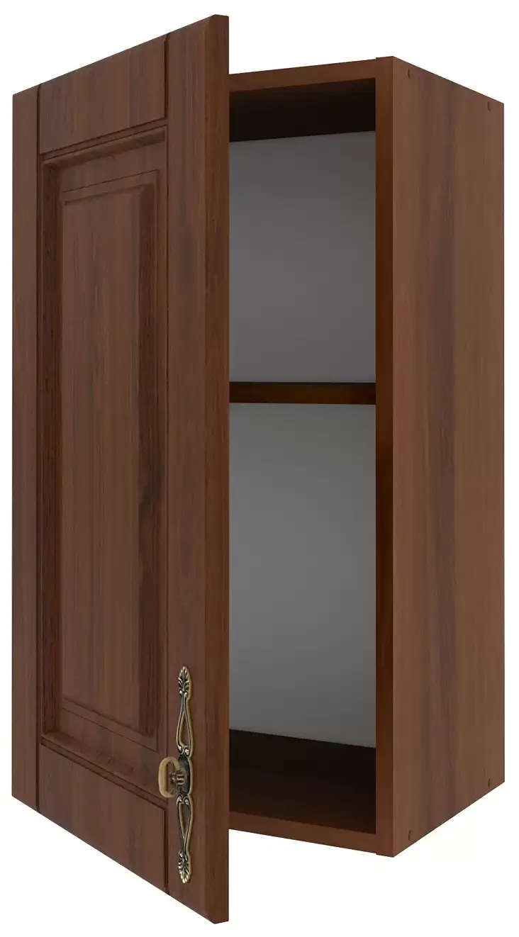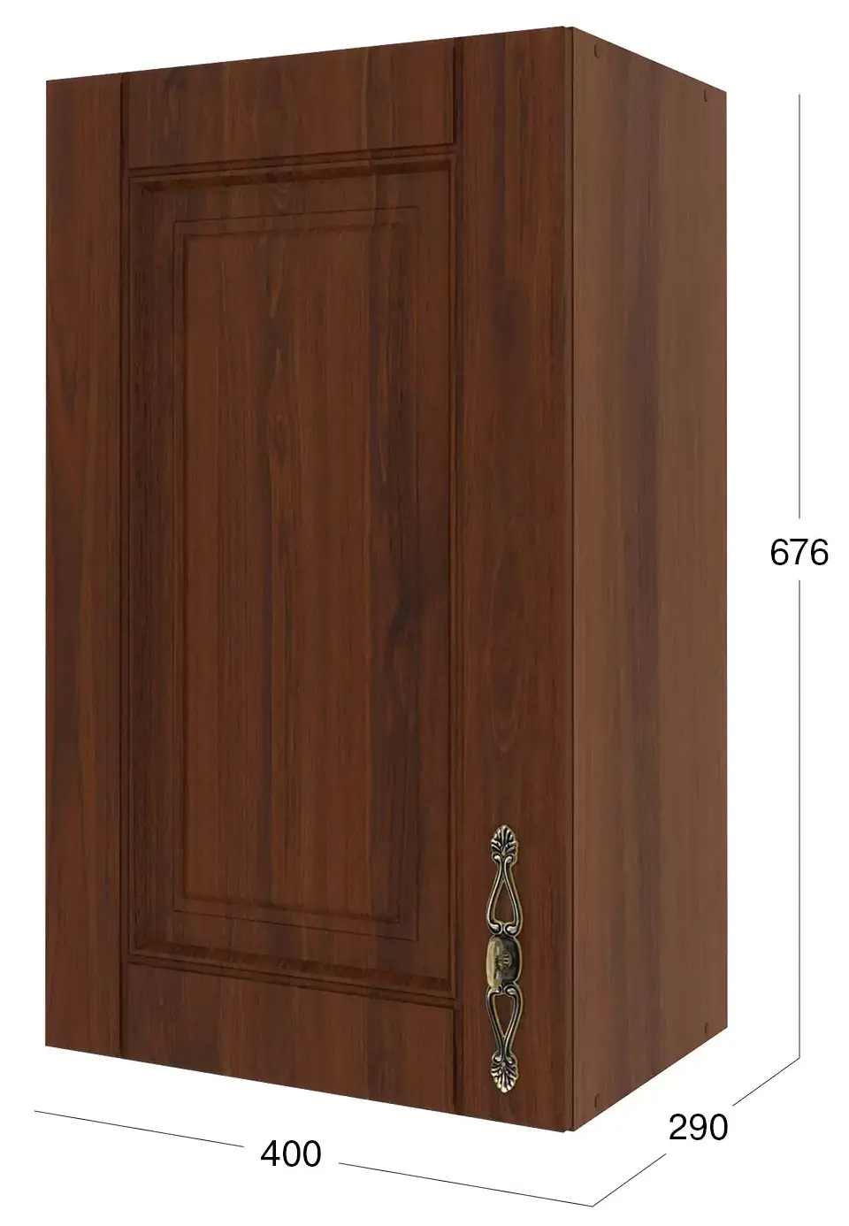 Стильное решение для классической кухни, выполненное в благородном цвете темного дерева. Фасады выполнены из МДФ и обладают высокой надежностью, долговечностью и практичностью. МДФ-панели покрыты пленкой ПВХ эффективно защищающей фасады от выцветания, истирания поверхностей и потери внешней привлекательности.