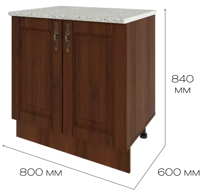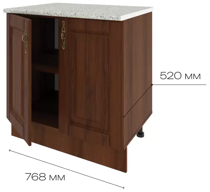 Стильное решение для классической кухни, выполненное в благородном цвете темного дерева. Фасады выполнены из МДФ и обладают высокой надежностью, долговечностью и практичностью. МДФ-панели покрыты пленкой ПВХ эффективно защищающей фасады от выцветания, истирания поверхностей и потери внешней привлекательности.