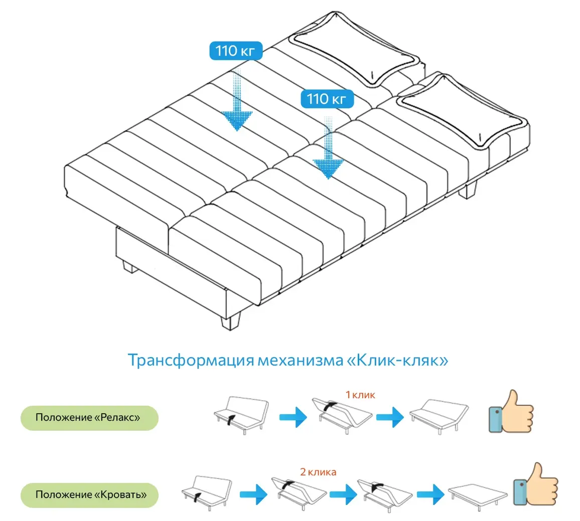 | Максимальная нагрузка на спальное место (кг) | 110 |