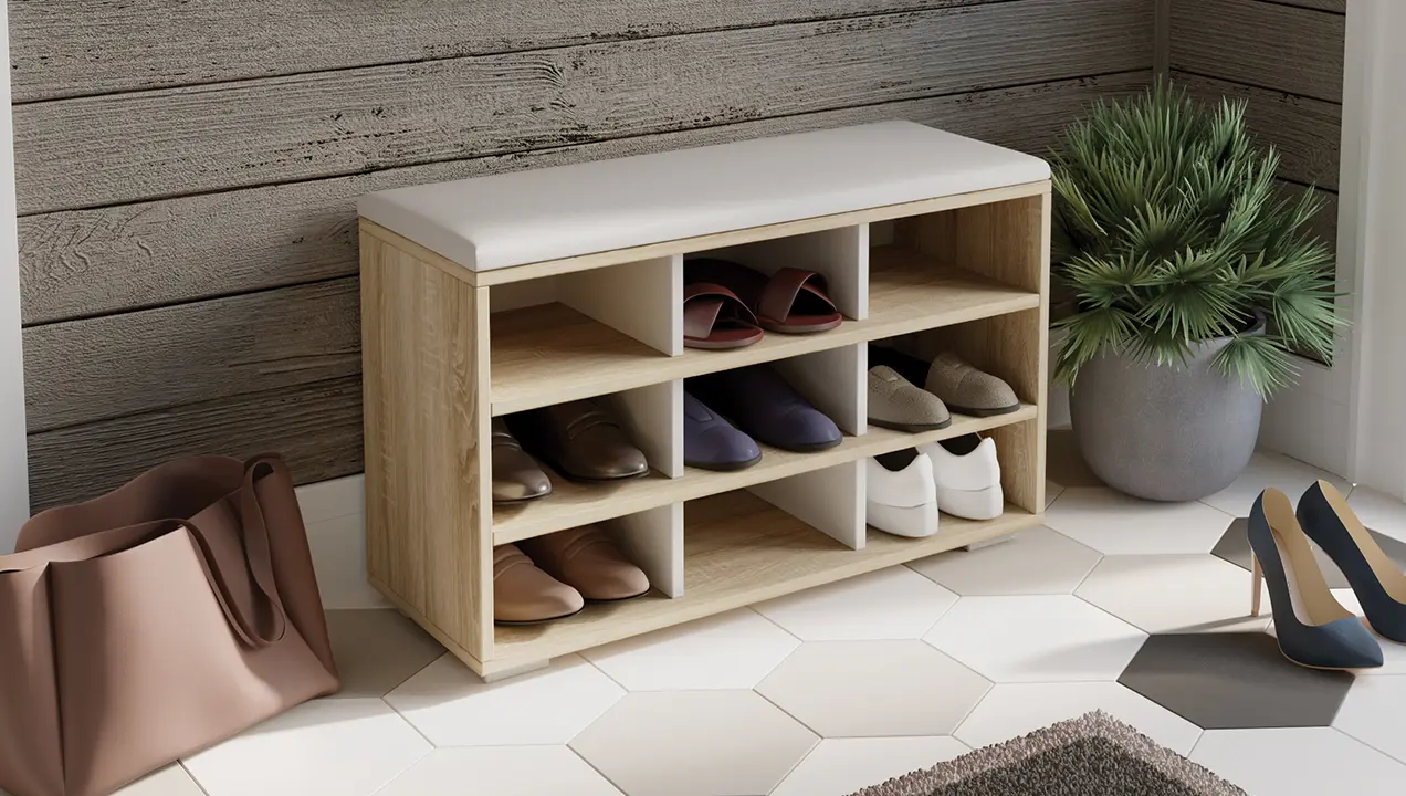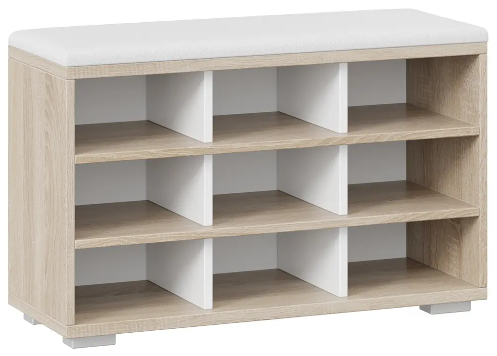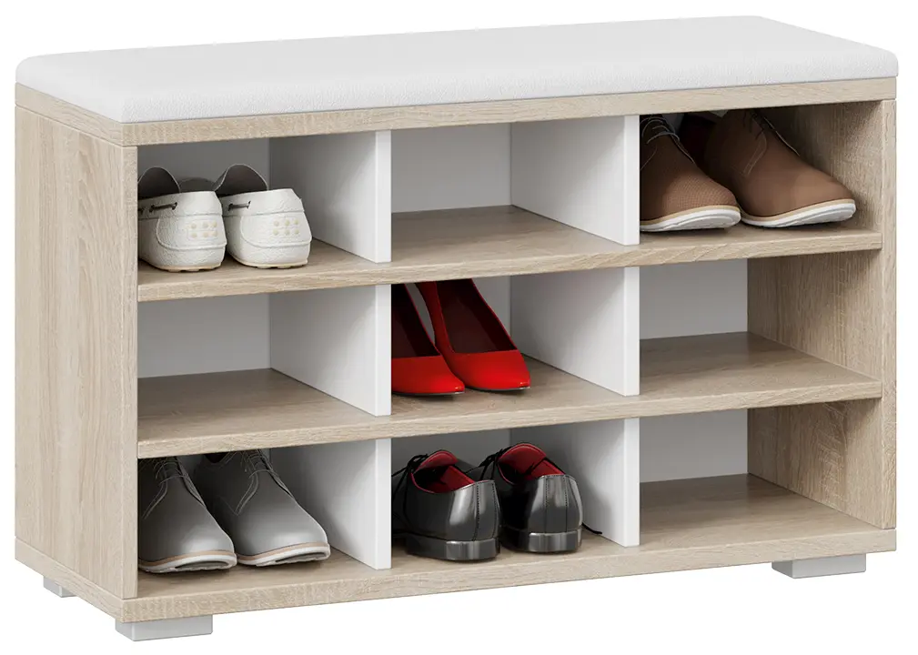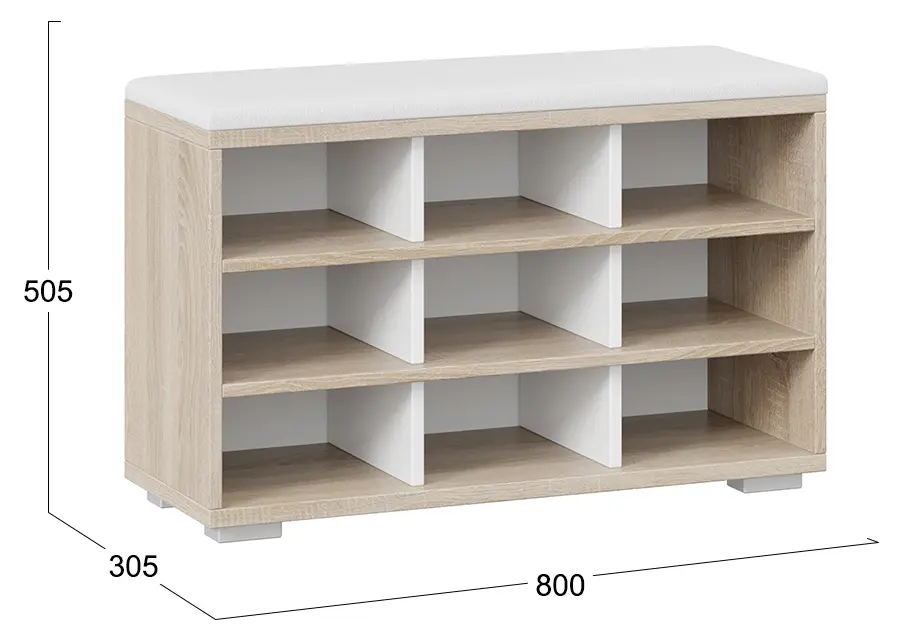 Модель оснащена открытыми полками для обуви, что позволяет быстро найти нужную пару, не тратя лишнего времени. Для удобства эксплуатации тумба оборудована мягким сиденьем, тем самым не только добавит уюта, но и сделает процесс переобувания более комфортным.