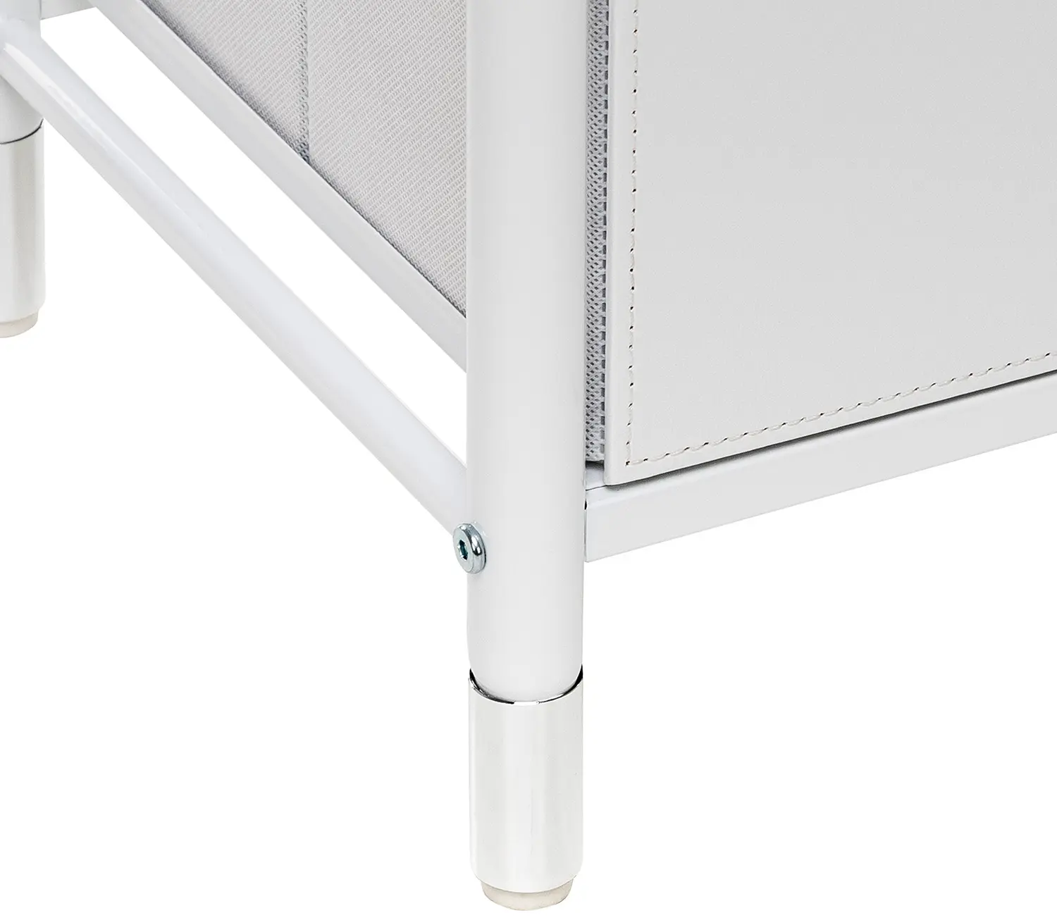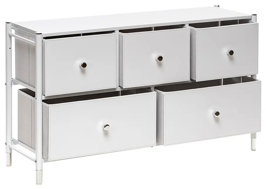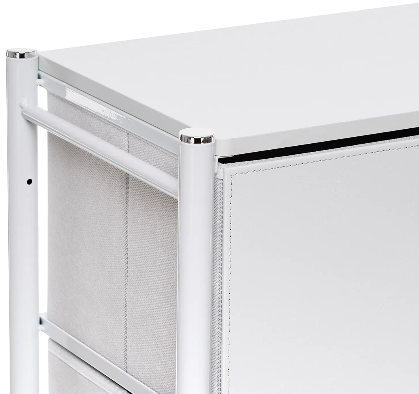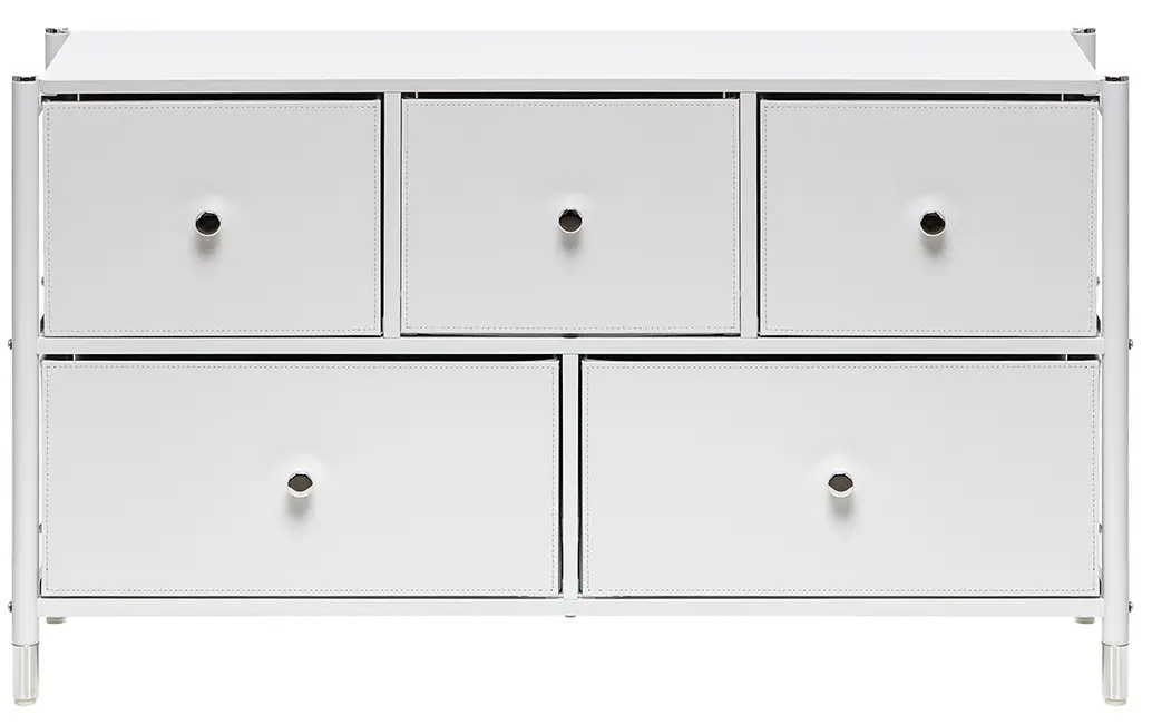 Ящики произведены из матовой экокожи, дно и бока – спанбонд для устойчивости к большим нагрузкам (один ящик выдерживает 10 кг). Рекомендуется прикручивать комод к стене с помощью шурупов (в комплекте), согласно инструкции. Это исключит возможность опрокидывания комода (особенно важно для детских комнат и помещений с маленькими детьми).