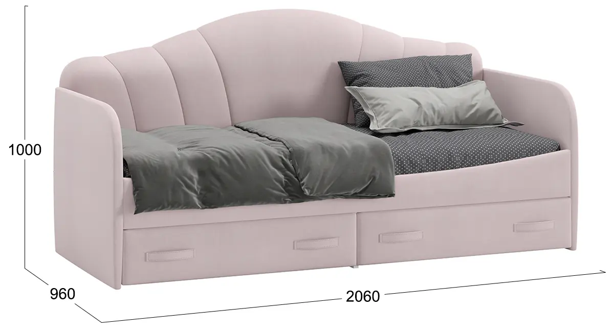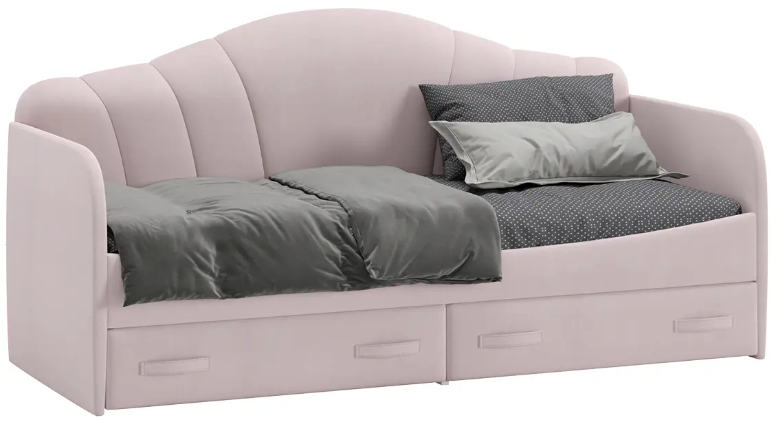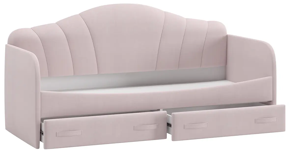 Благодаря своей конструкции кровать отлично разместится вдоль стены и сохранит полезное пространство комнаты. Днем это замечательный диванчик, а ночью – спальное место. Важной деталью комнаты является возможность рационального хранения, поэтому кровать оборудована двумя выдвижными ящиками, которые пригодятся для хранения игрушек и постельного белья.