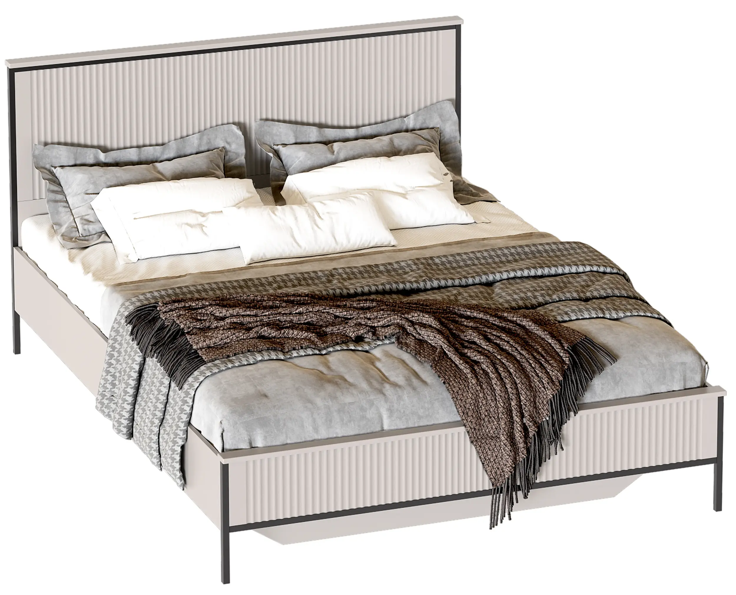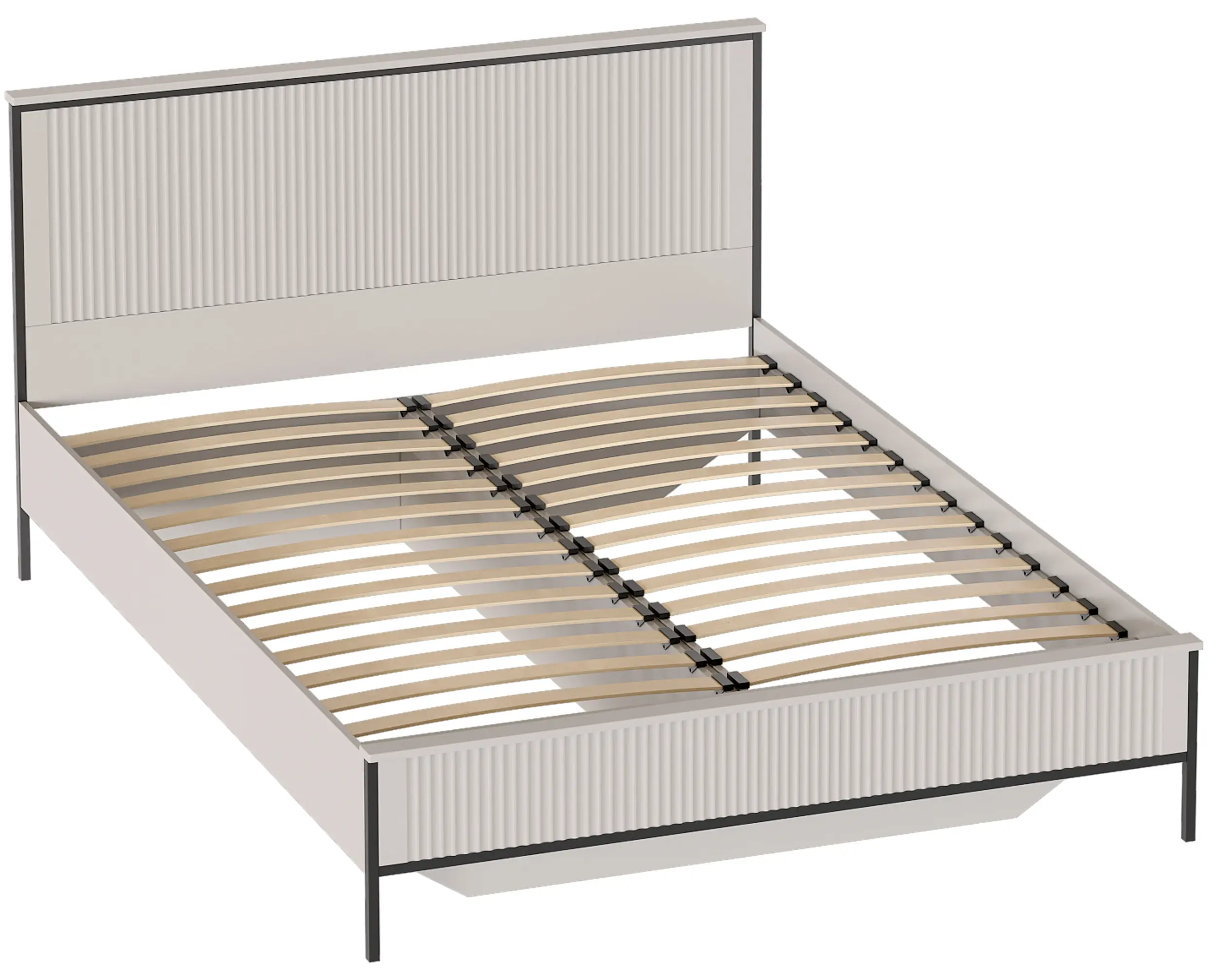 Изголовье кровати в цвете Персидский жемчуг / Персидский жемчуг выполнено из МДФ и декорировано фрезеровкой. Матрасное основание из деревянных ламелей встроено в конструкцию кровати.