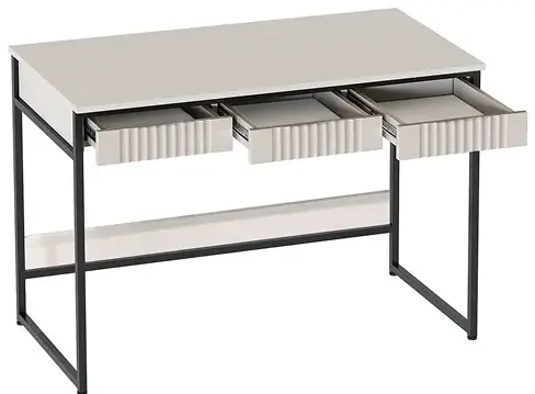 Три ящика полного выдвижения под столешницей идеально подойдут для хранения письменных принадлежностей, блокнотов и документов. Столешница и ящики изделия выполнены из качественных и безопасных материалов (ЛДСП и МДФ), каркас - из профильной трубы 20х20 мм и оснащен четырьмя регулируемыми опорами.