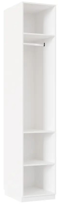 - За фасадом верхней секции — полка ЛДСП и штанга для одежды;