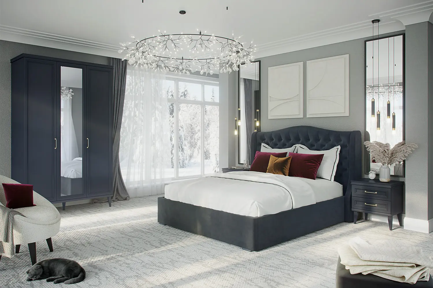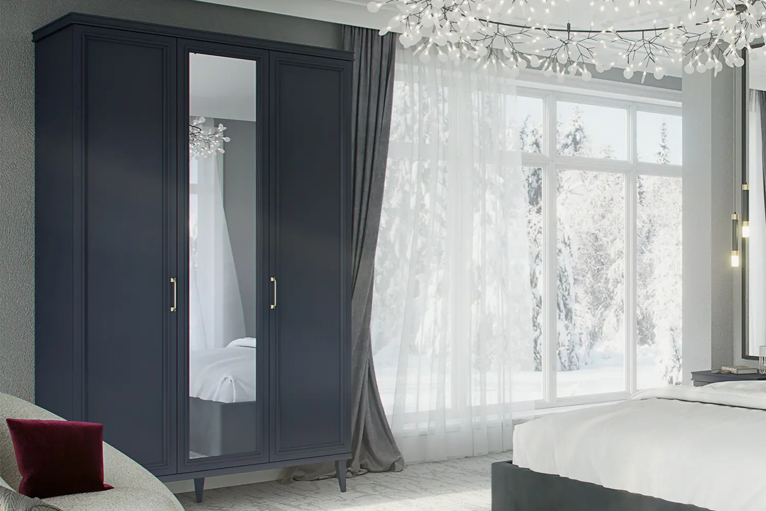 - Шкаф трёхстворчатый с двумя отделениями;