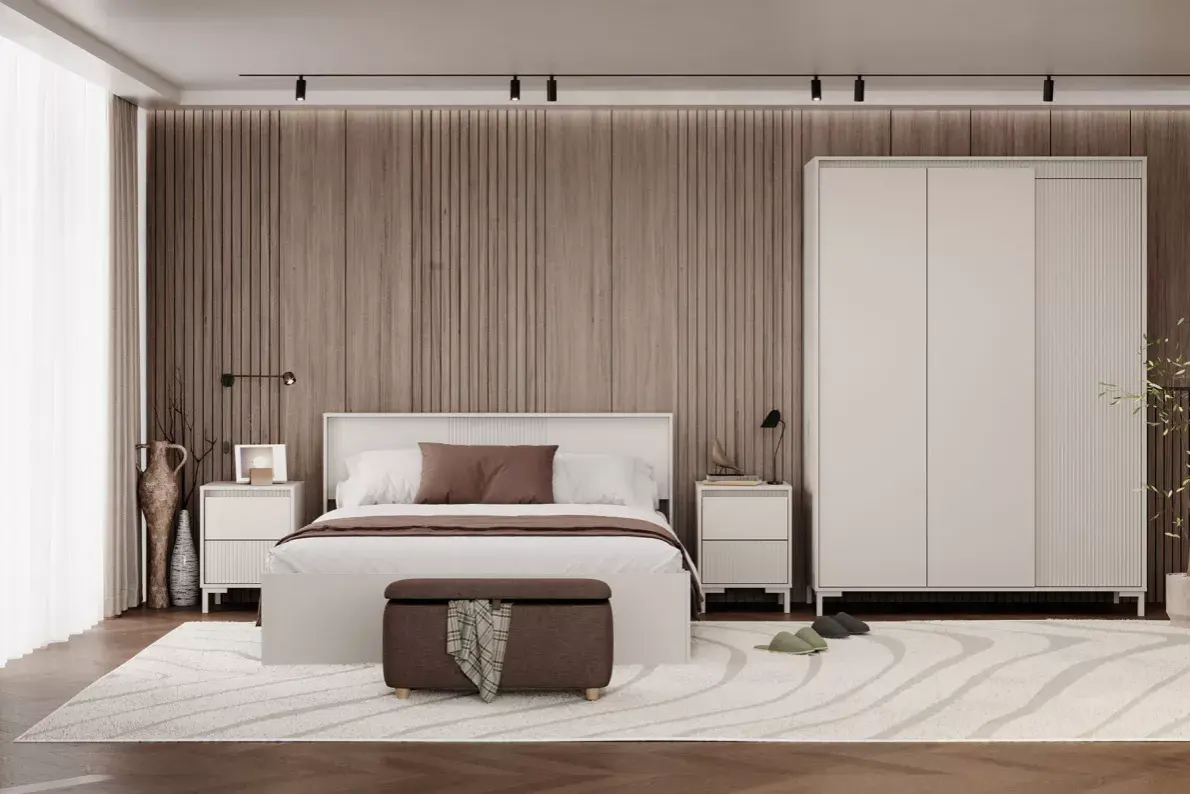 Шкаф Свейн органично дополняет интерьер спальни, поддерживая единый стиль коллекции и обеспечивая удобное, структурированное хранение вещей.
