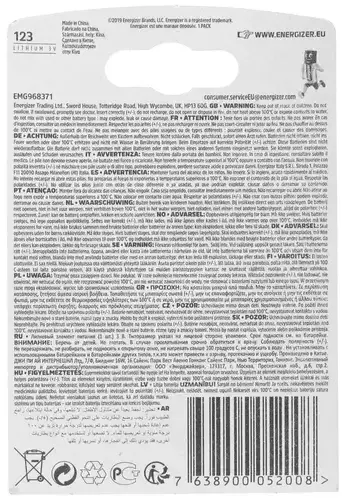 | Форм-фактор батарейки | CR123 |