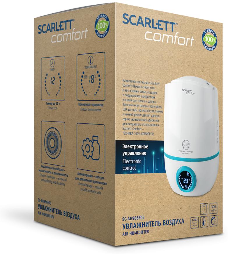 Увлажнитель воздуха Scarlett SC-AH986E05 - компактный и многофункциональный прибор для создания оптимального микроклимата в вашей квартире. Эргономичный LED-дисплей отображает температуру, все режимы и функции прибора. Для создания приятной и ароматной атмосферы, достаточно лишь добавить несколько капель аромамасла в капсулу, которая находится на поддоне прибора. Функция таймера на 12 часов поможет настроить время работы увлажнителя. Контейнер для воды вмещает в себе 2.3 литра воды, чего достаточно для увлажнения помещения площадью до 30 квадратных метров. При отсутствии воды в увлажнителе, прибор автоматически отключается для сохранения длительного срока службы прибора.