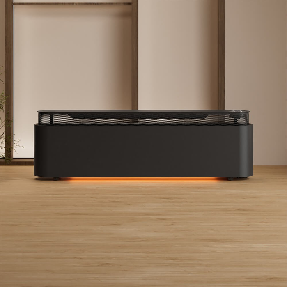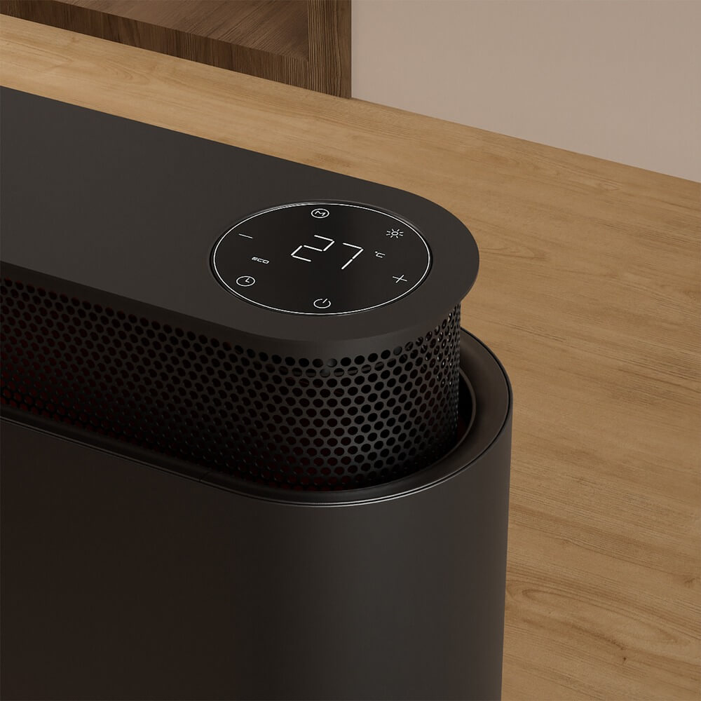 Компактный обогреватель достигает чуть больше 20 см в высоту. Деликатная подсветка в основании подчеркнет красоту металла в темное время суток.