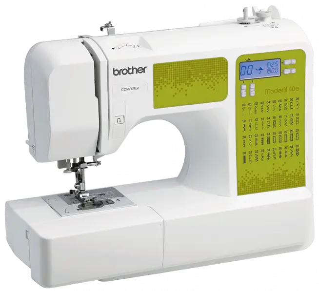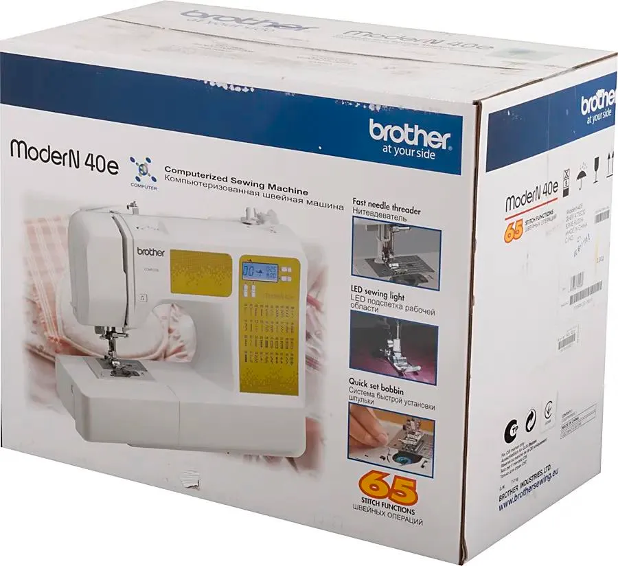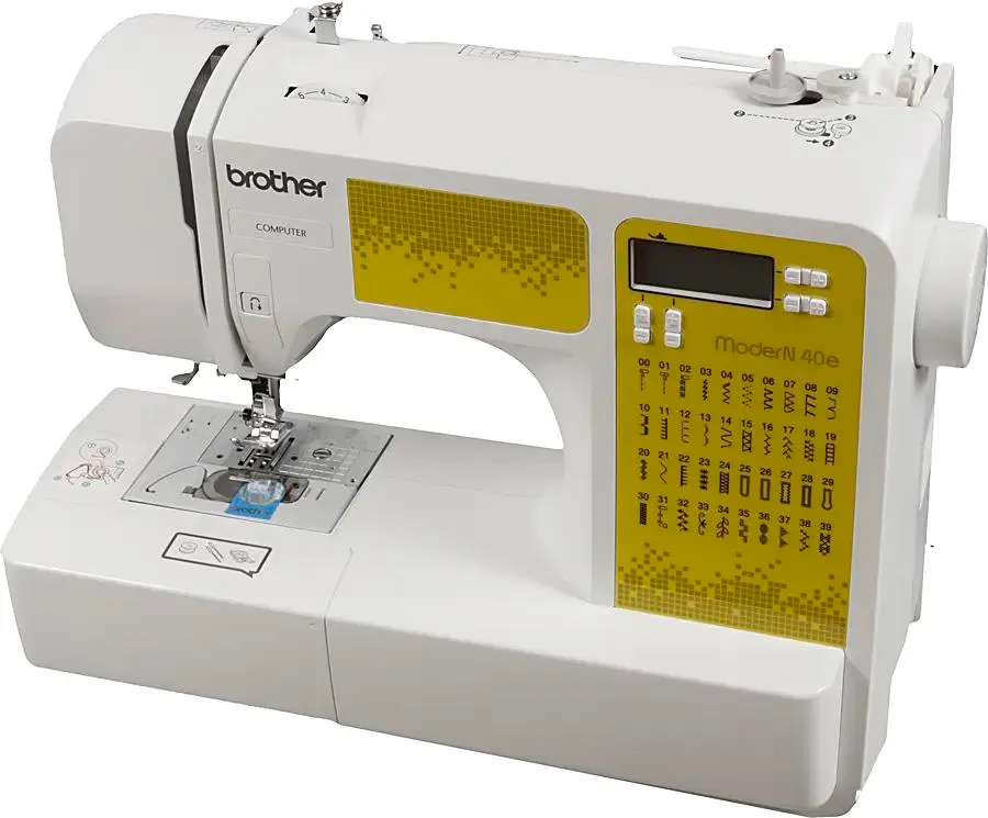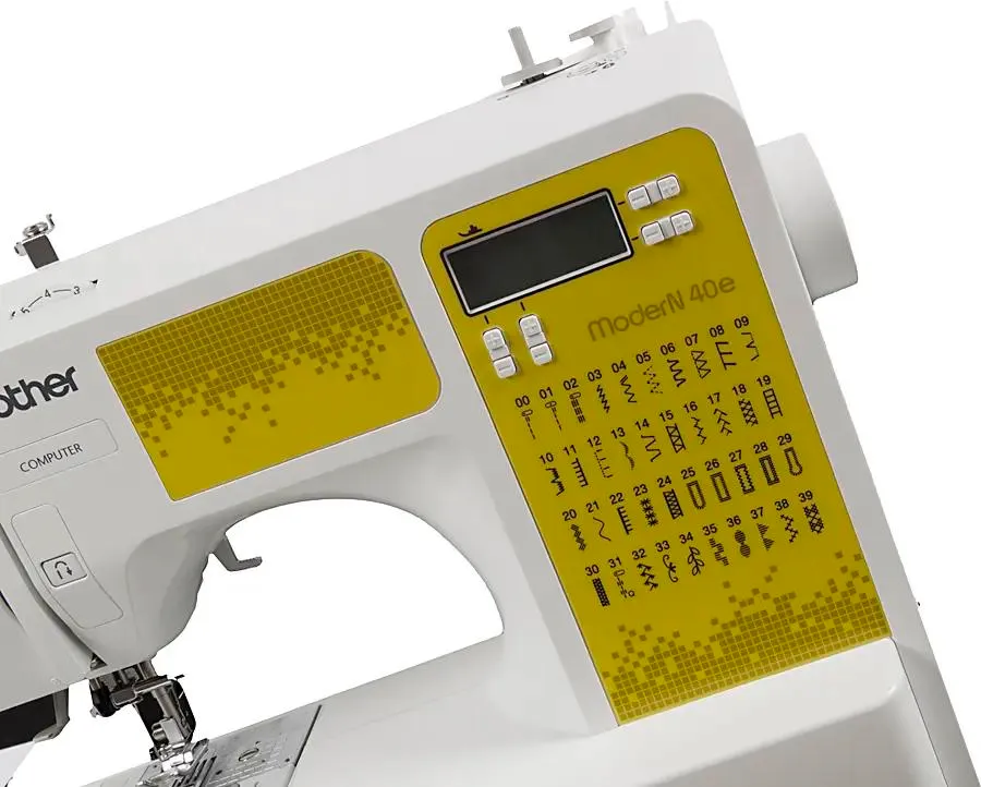 Швейная машина Brother ModerN 40E – это настоящая находка для начинающей швеи и опытной портнихи. Ведь данная модель предусматривает огромнейший спектр функциональных возможностей, а именно, выполнение 40 операций (эластичные, классические прямые, оверлочные, невидимые/потайные, пэчворкские, квилтинговые, декоративные строчки, штопка, аппликационная и художественная отделка изделий и т.д.), выметывание 9 видов петлей-автомат.