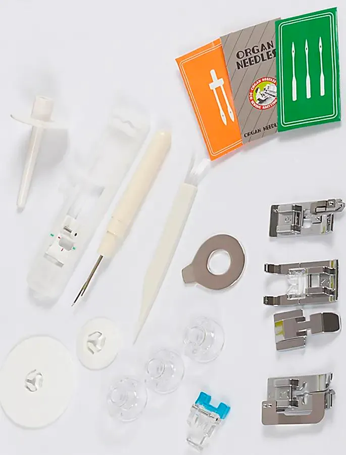 | Лапки в комплекте | для потайной строчки/ для пришивания пуговиц/ для вшивания молнии/ стандартная (зиг-заг) |