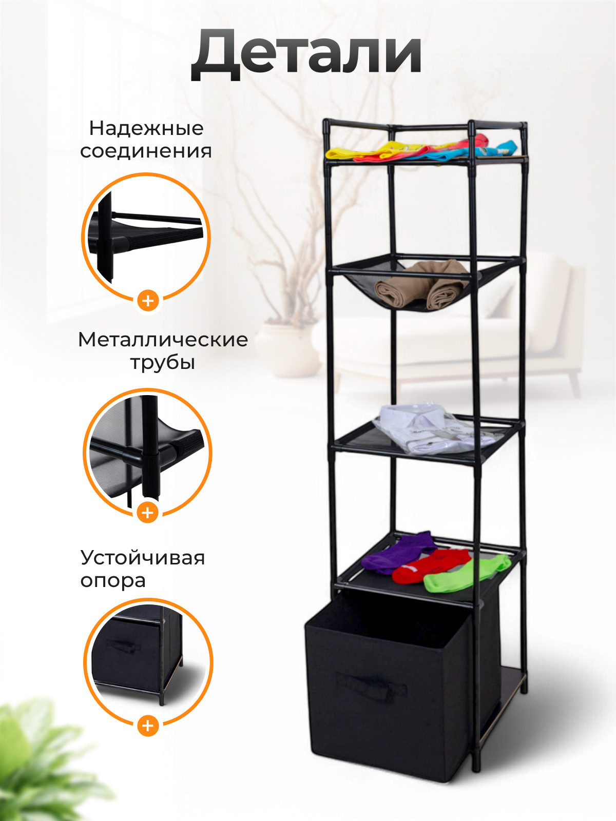 - Выдвижной ящик из полиэстера.