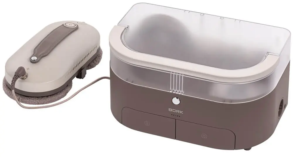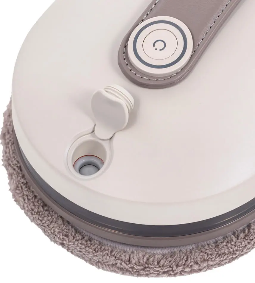 Робот равномерно распыляет воду на поверхности и имитирует повторяющиеся круговые движения рук человека для удаления самых стойких пятен.