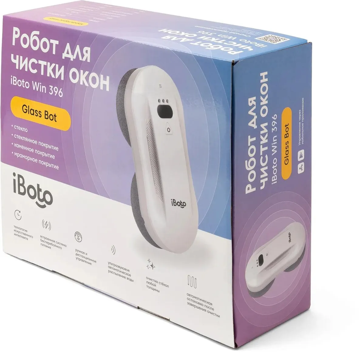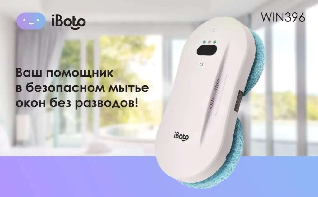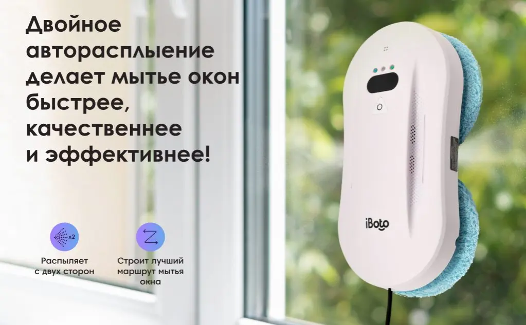 Робот мойщик окон с распылением с двух сторон iBoto Win 396 от специализированного на робототехнике бренда iBoto – это идеальный робот мойщик, чтобы экономить вам время и деньги на мытье окон, безопасно мыть любую вертикальную и горизонтальную поверхность в квартире или доме: окна, зеркала и многое другое, не оставляя разводов, не царапая и не повреждая поверхность! Робот мойщик будет прекрасным помощником в решении проблемы безопасного мытья окон от 30 см на высоких этажах!