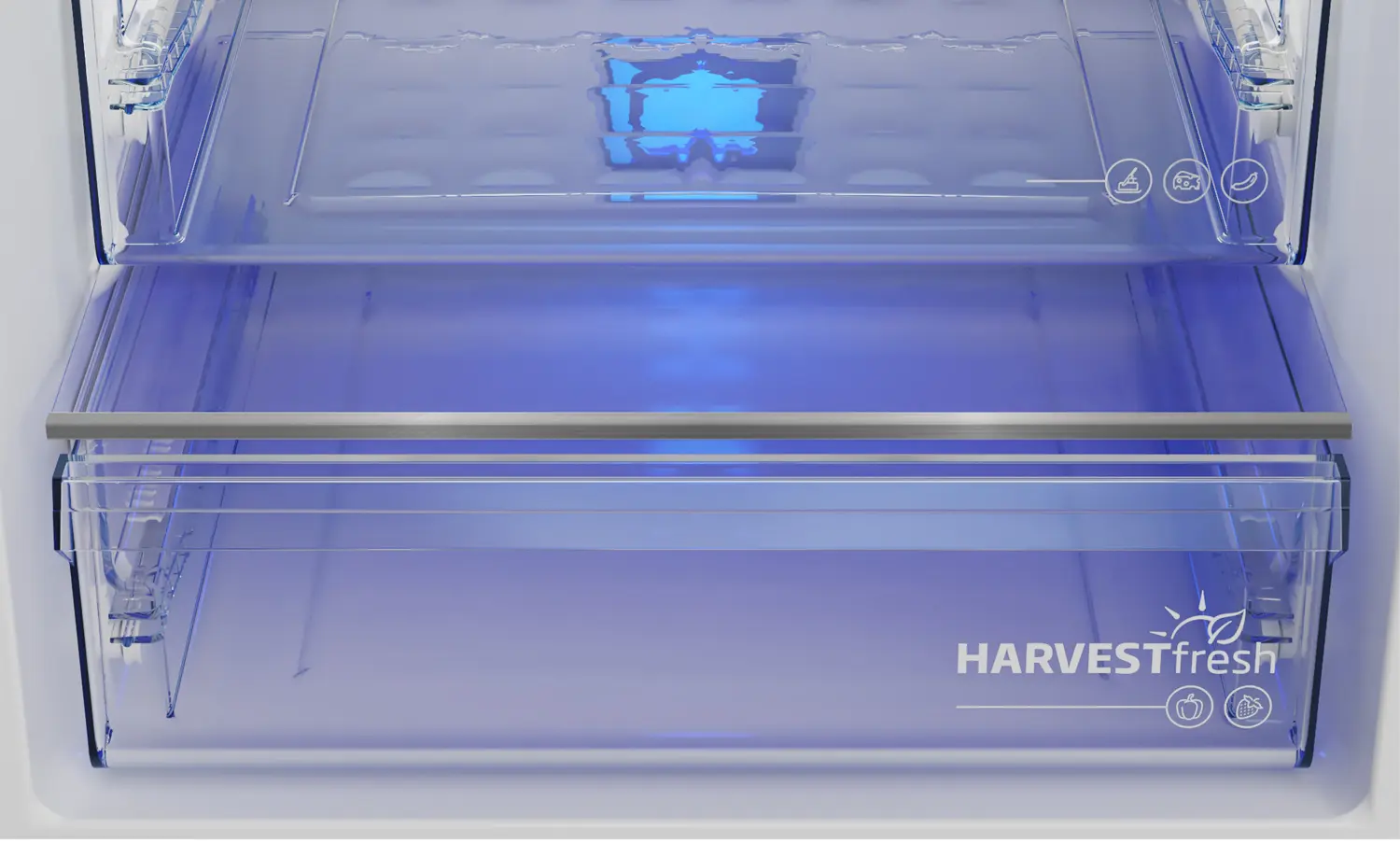 В холодильной камере расположены ящик для фруктов и овощей с технологией трехцветной подсветки HarvestFresh, которая сохраняет их свежесть и концентрацию витаминов, и отделение с температурой 0-3 °С для более длительного хранения свежего мяса, рыбы и молочных продуктов. В холодильнике есть режим суперзаморозки, который позволяет добавлять новые продукты в морозилку, не нарушая температурный режим внутри холодильника.