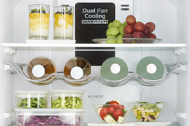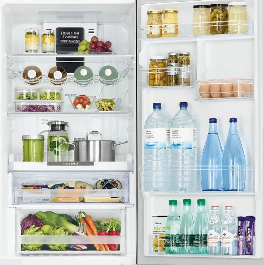 В основе работы лежит инверторный компрессор, который подстраивает мощность в зависимости от текущей нагрузки. Это позволяет снизить энергопотребление и продлить срок службы устройства. За равномерное охлаждение отвечает система Dual Fan Cooling с двумя вентиляторами — холодный воздух распределяется по камерам без сквозняков и резких перепадов температуры. Встроенный датчик Eco Sensor контролирует температурный режим и корректирует его в реальном времени, создавая оптимальную среду для свежести продуктов.