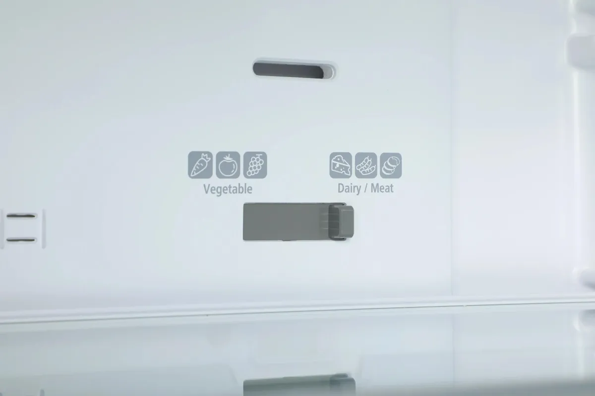 В холодильном отделении предусмотрены четыре уровня, ящик для овощей и зона выбора, в которой можно изменять условия хранения. Для фруктов +5°C, для мяса и рыбы +1°C. Контейнеры на дверце холодильной камеры легко переместить для удобства размещения коробок, бутылок и банок разного размера.