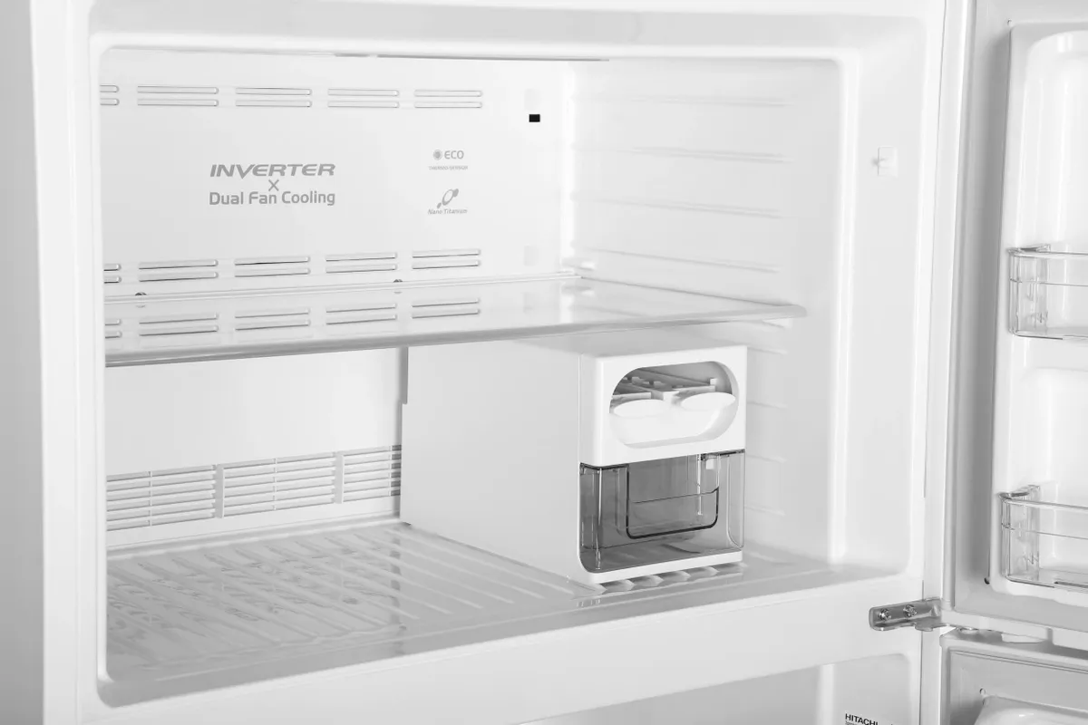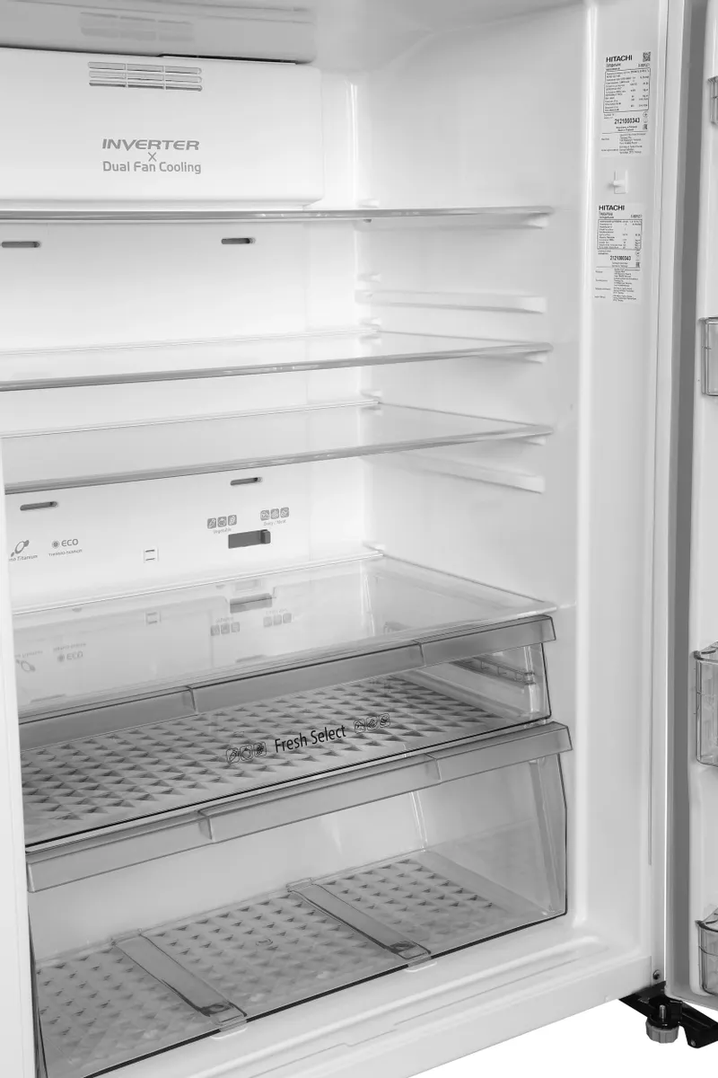 Холодильник Hitachi R-V 660 PUC7-1 PWH — модель с фронтальной поверхностью белого цвета. Оснащена верхней морозильной камерой с ручным ледогенератором, который можно переставлять с одной полки на другую. Настройка температуры и программ производится при помощи сенсорного дисплея Touch Screen Controller.