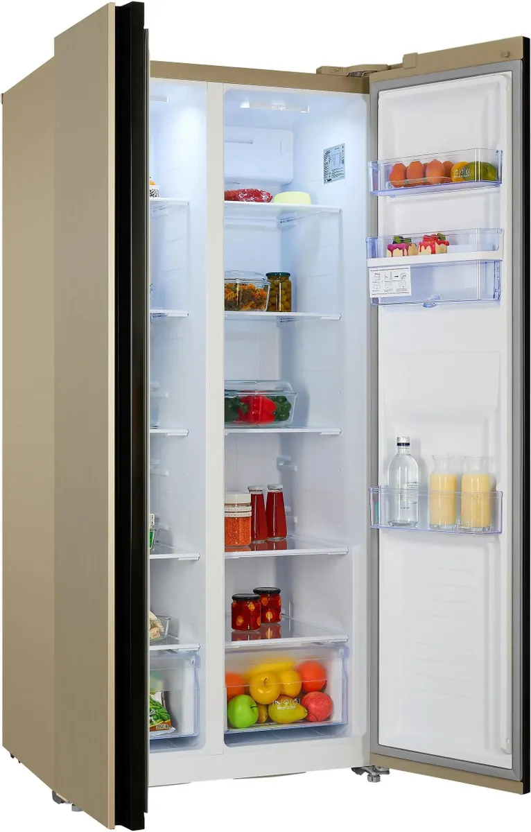 Холодильник выполнен в стильном и лаконичном дизайне в цвете «шампань».