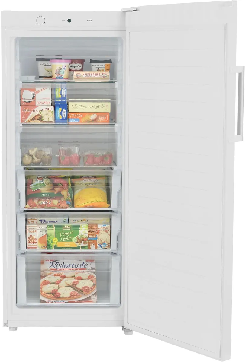 Привычное классическое управление — поворотным регулятором — позволяет легко установить нужный режим работы морозилки. Надёжный компрессор с низким энергопотреблением (класс энергоэффективности — А+) обеспечивает бесперебойную работу морозильного шкафа.