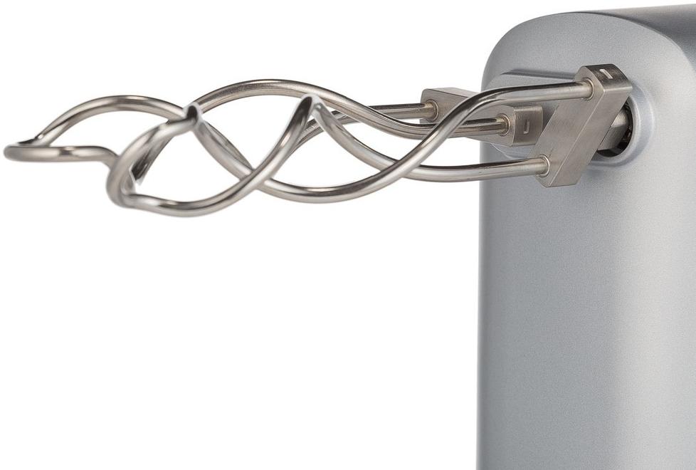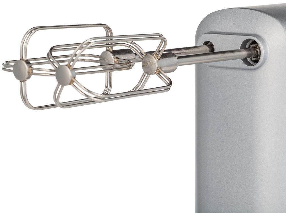 8-контурные венчики эффективнее насыщают смесь воздухом, стальные тестомесы справятся с плотным тестом, а насадка от разбрызгивания подойдет для работы в неглубоких емкостях.