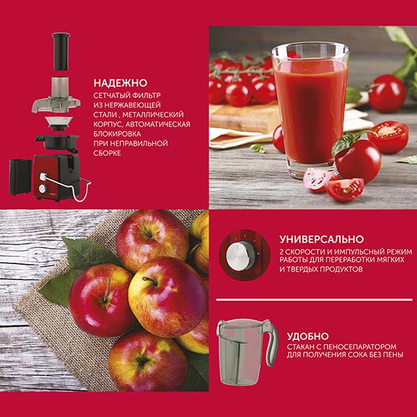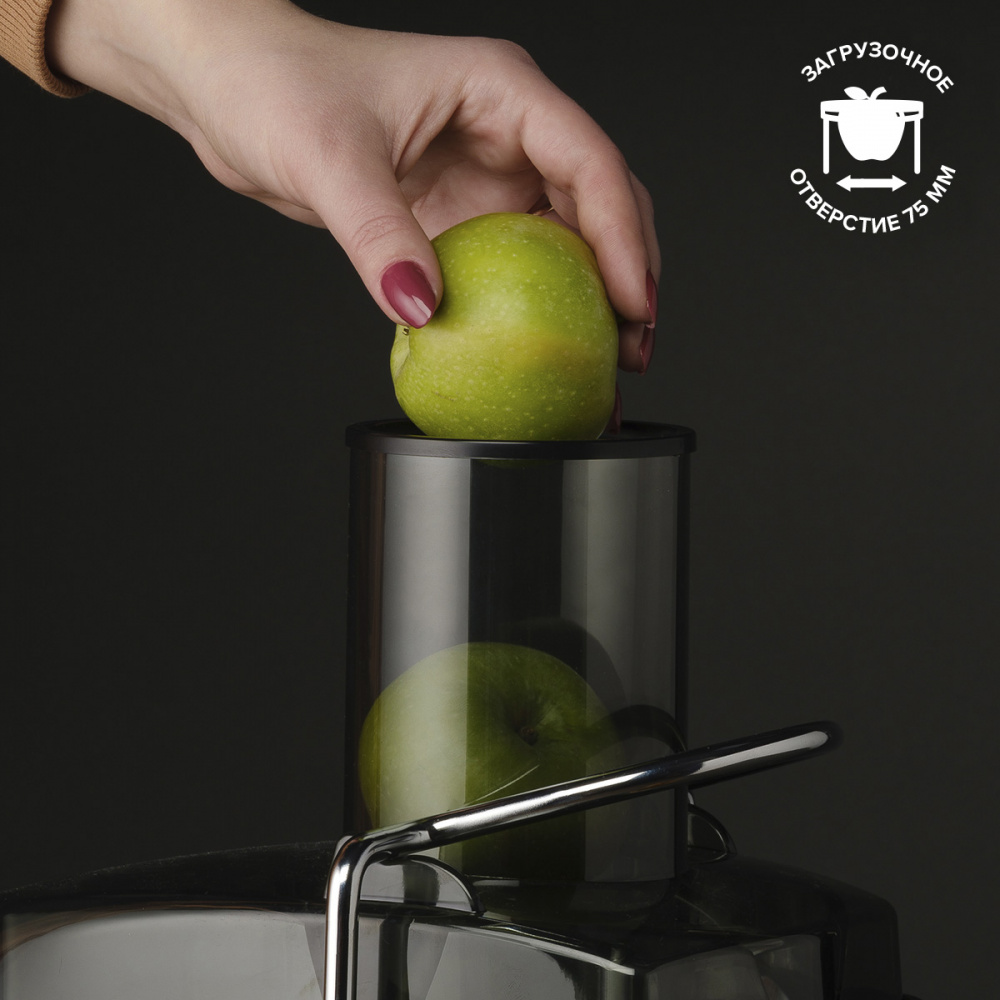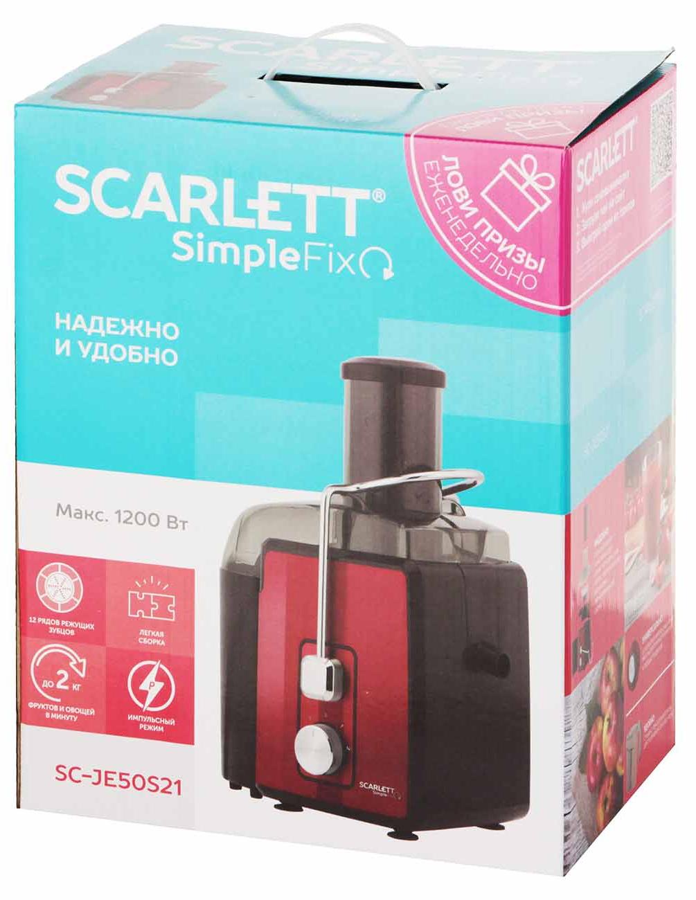 Центрифужная соковыжималка Scarlett SC-JE50S21 мощностью 1200 Вт, оснащенная широким загрузочным отверстием 75 мм, экономит время на отжим сока, ведь продукты можно подавать целиком. Емкость для сбора мякоти 1000 мл и емкость для сбора сока 600 мл в комплекте. Корпус и фильтр выполнены из нержавеющей стали, что гарантирует долговечное использование соковыжималки. Прозрачная крышка для контроля заполняемости емкости позволяет следить за процессом приготовления.